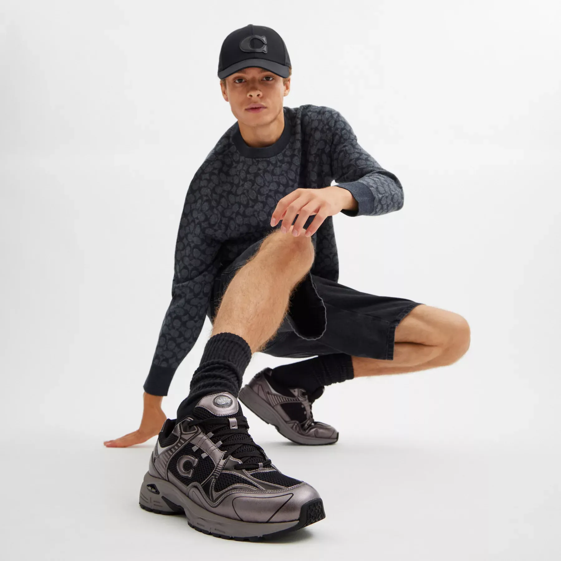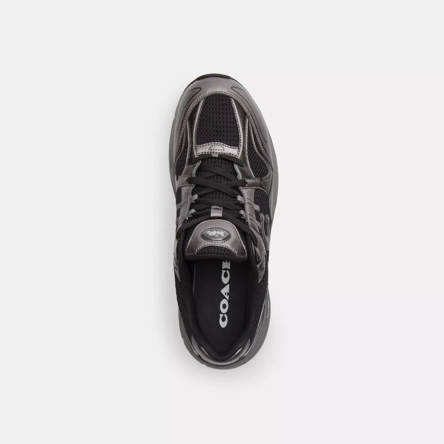 ,A sleek style based on classic running shoes, our sporty C301 sneaker is crafted in a mix of high-shine metallic leather and mesh fabric. Detailed with our iconic Horse and Carriage motif on the tongue and our Signature at the side, the lace-up design is finished with a lightweight EVA sole for all-day comfort and traction.
