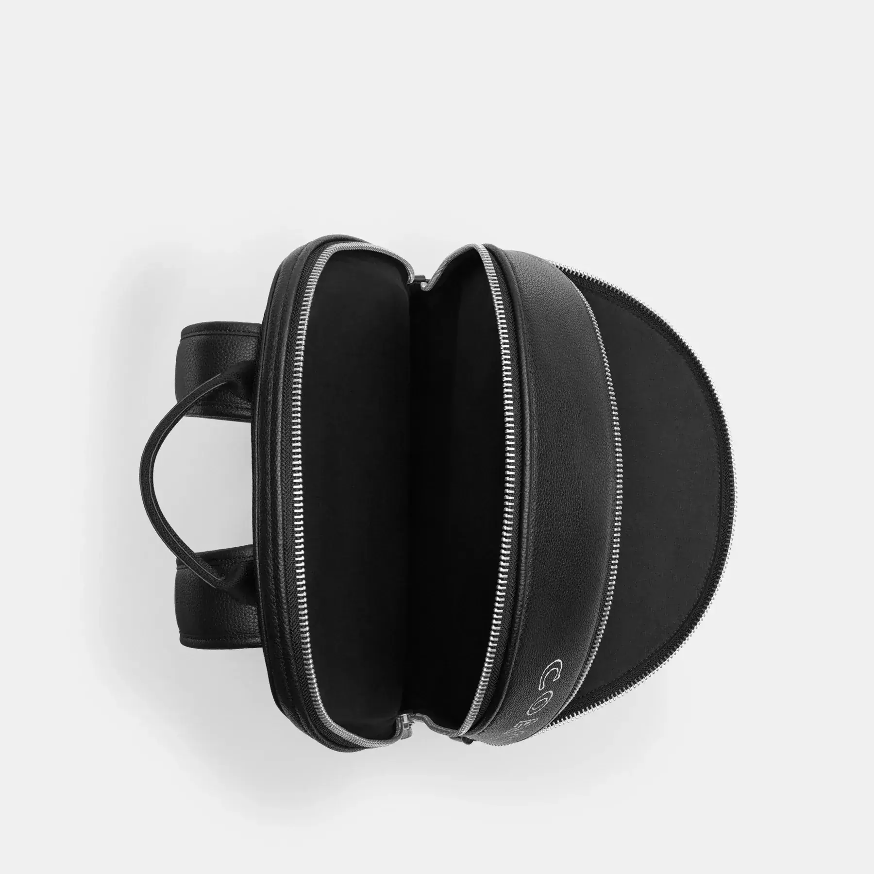 For adventures near and far, our Charter is designed to make every journey, commute and errand feel like a first-class experience. The Charter Backpack is an old-school silhouette crafted of polished pebble leather featuring our Coach Sketch print, a playful doodle motif of whimsical drawings and phrases inspired by artistic notebook scribbling. The structured interior has a padded tech sleeve and multifunction pockets for keeping your phone, chargers and other essentials organized.