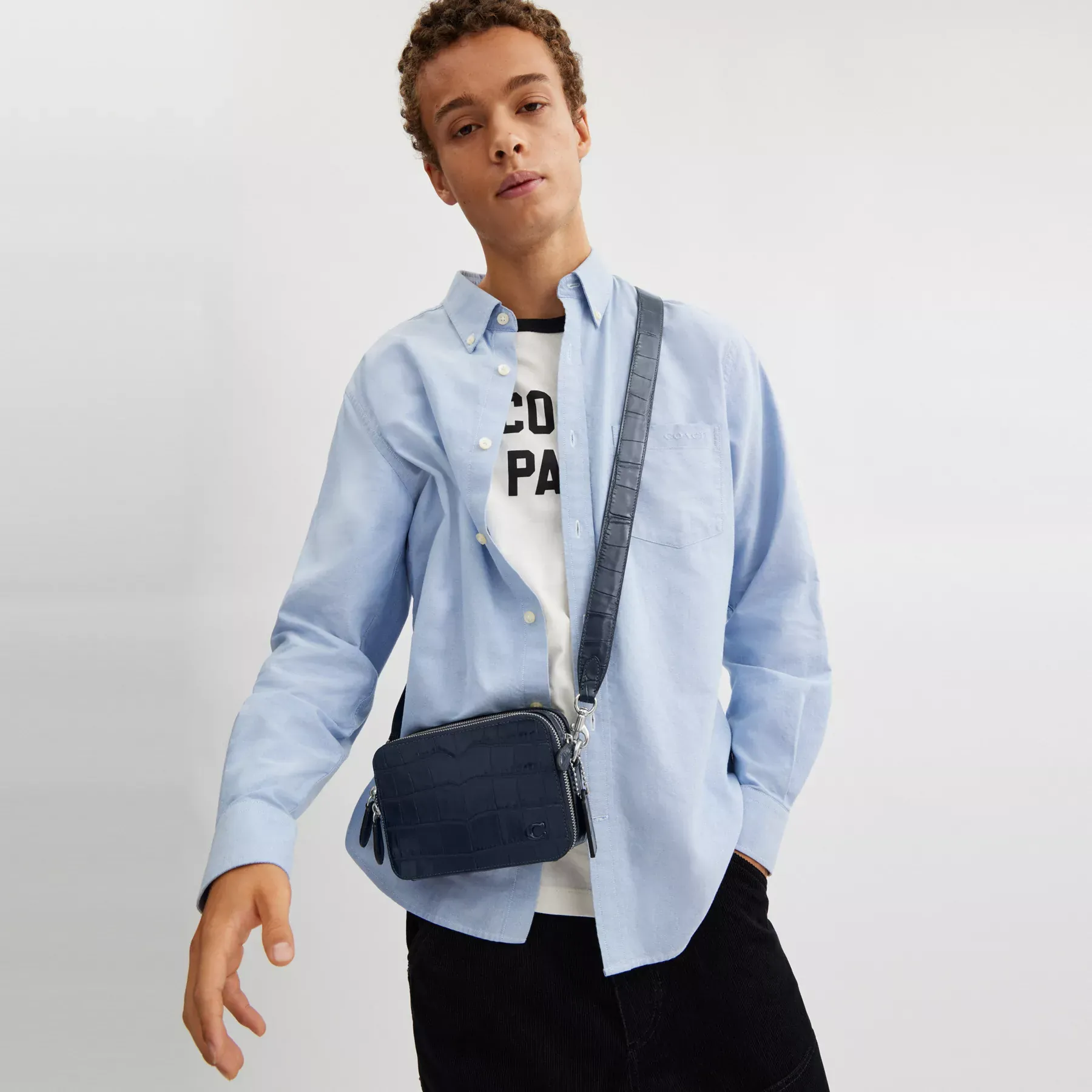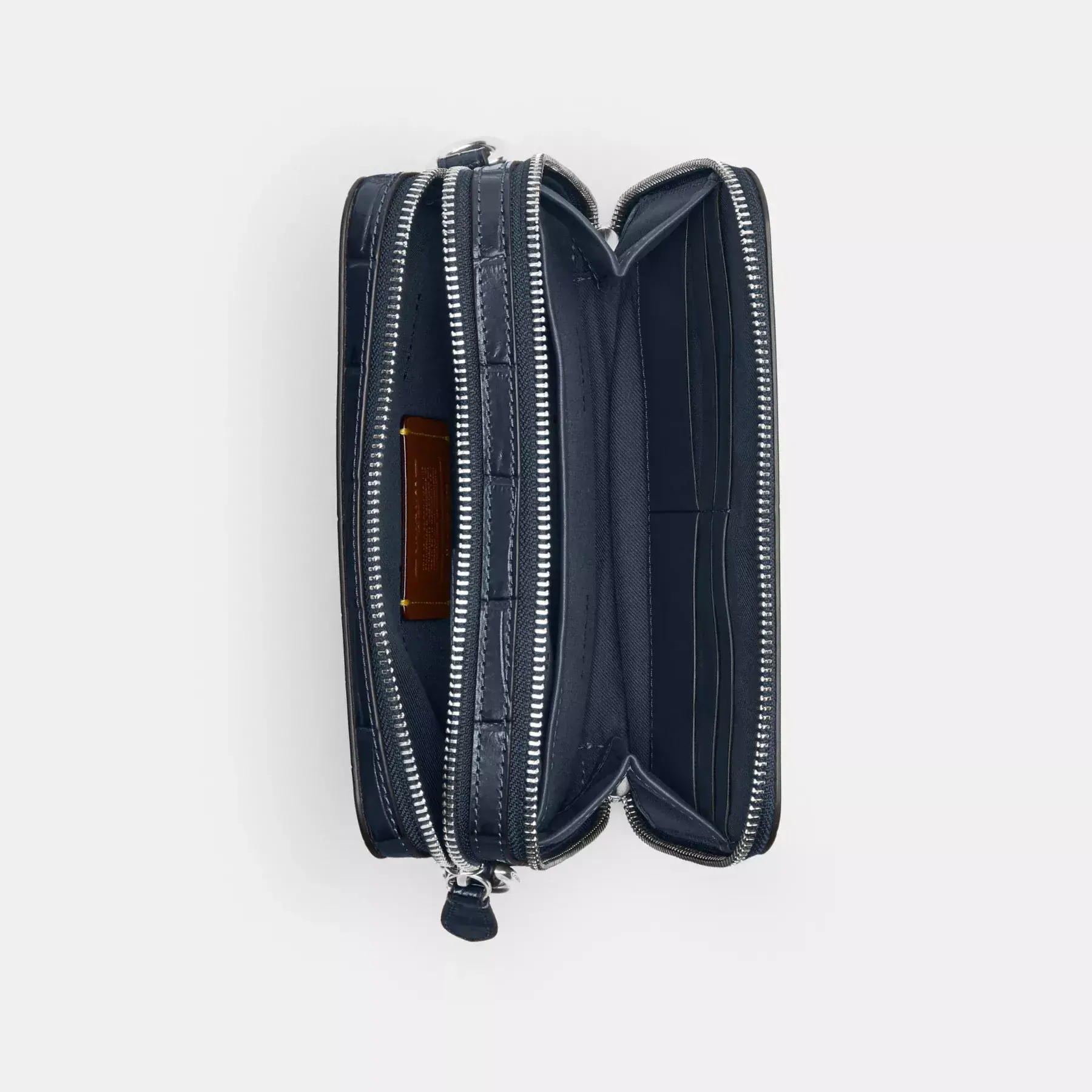 ,For adventures near and far, our Charter is designed to make every journey, commute and errand feel like a first-class experience. Crafted of distinctive crocodile-embossed leather detailed with our tonal Signature hardware, our dual-zipper Crossbody 19 holds everyday essentials with interior card slots, a multifunction pocket and room for a phone, wallet and more.