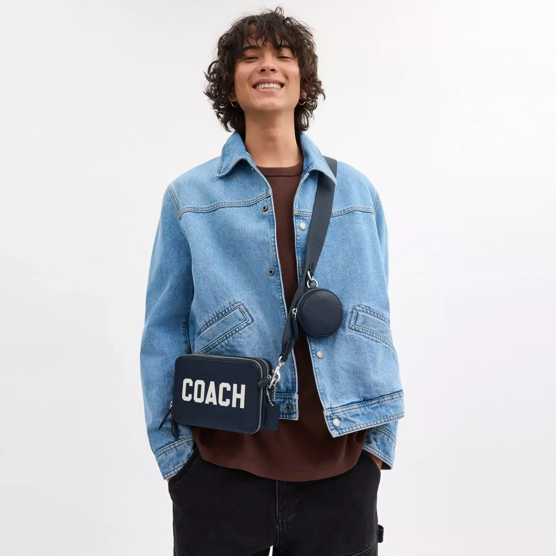 ,For adventures near and far, our Charter is designed to make every journey, commute and errand feel like a first-class experience. Crafted of soft polished pebble leather detailed with our Coach graphic, this versatile crossbody keeps items organized with six card slots, a multifunction pocket and detachable round zip pouch. Slip it into a backpack, brief or tote, carry it as a clutch with the slip handle or convert it to a small messenger crossbody with the detachable strap.