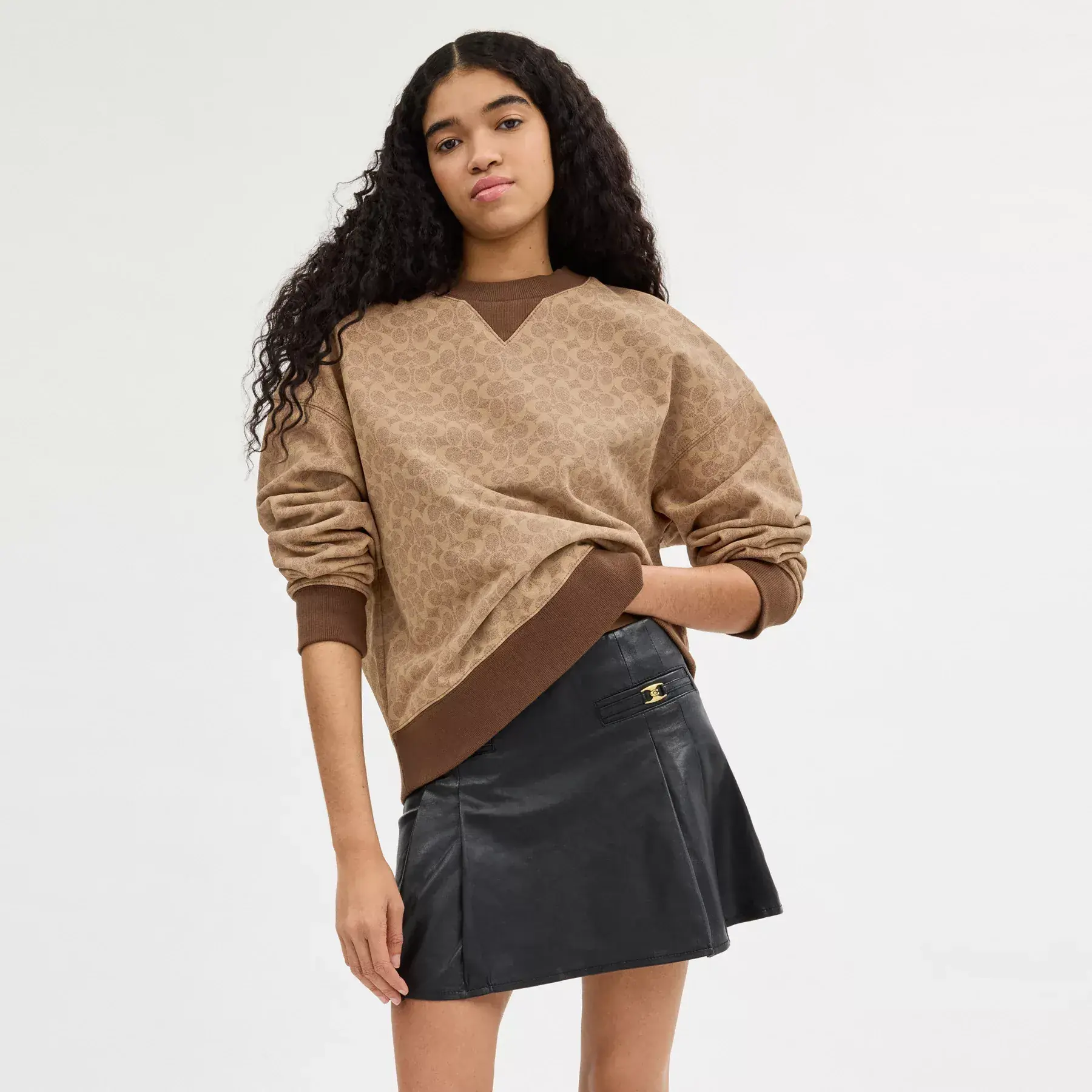 ,Add our Signature to your style with this crewneck sweatshirt. Crafted of soft cotton, the classic-fit crewneck is finished with an athletic-inspired V-insert and our Coach tag for a heritage touch.
