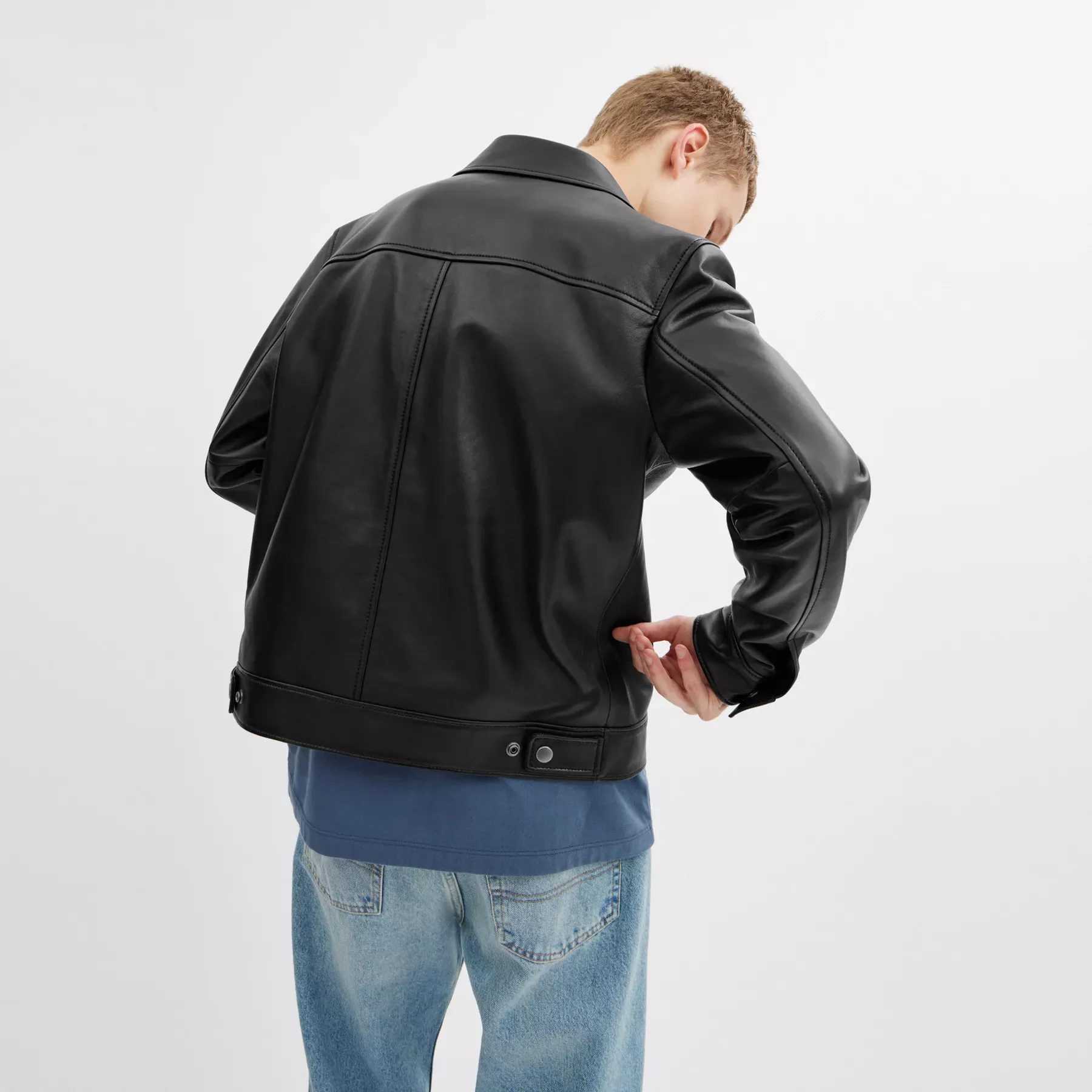 ,A wardrobe classic and go-with-everything style, this supple leather jacket is specially treated for rich color and a luxurious soft feel. Detailed with our Heritage C Plaque, the slim-fit design features a traditional pointed collar, slip pockets and a zip-front closure.
