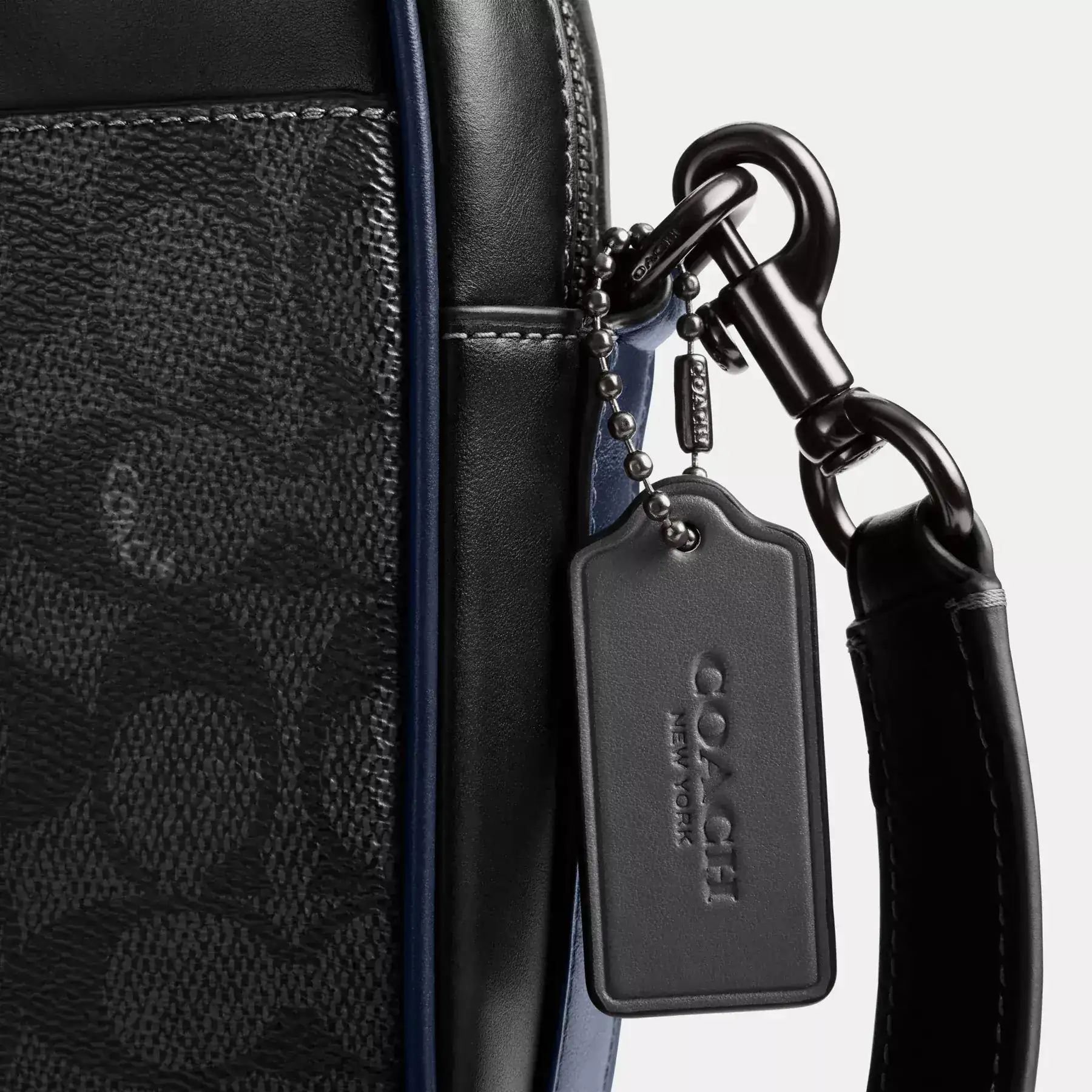 ,Combining effortless style and major functionality, our Hitch takes you to work, weekends and everywhere in between. Crafted of our Signature canvas and colorblock refined leather, this organized crossbody has an interior multifunction pocket to hold small accessories and an exterior slip pocket for easy access to essentials. It’s finished with a zip-top closure and a detachable strap for crossbody wear.