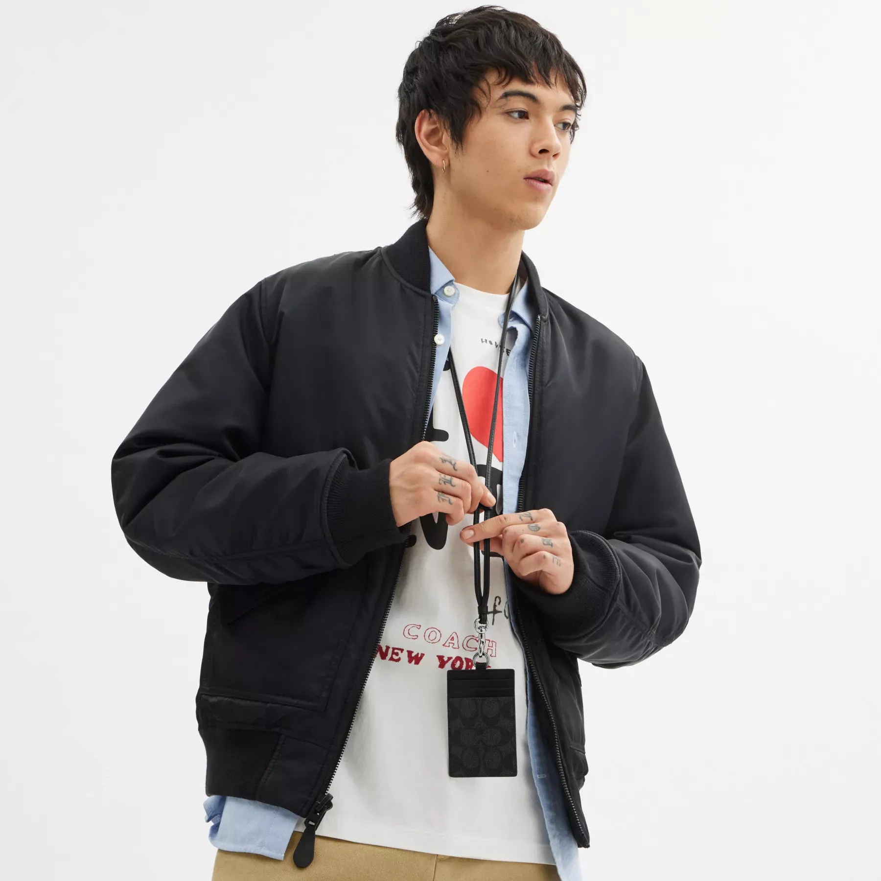 ,This refined leather and Signature denim lanyard features an ID window, plus three card slots at the back. Wear it around the neck or detach the adjustable strap and tuck it into a bag.