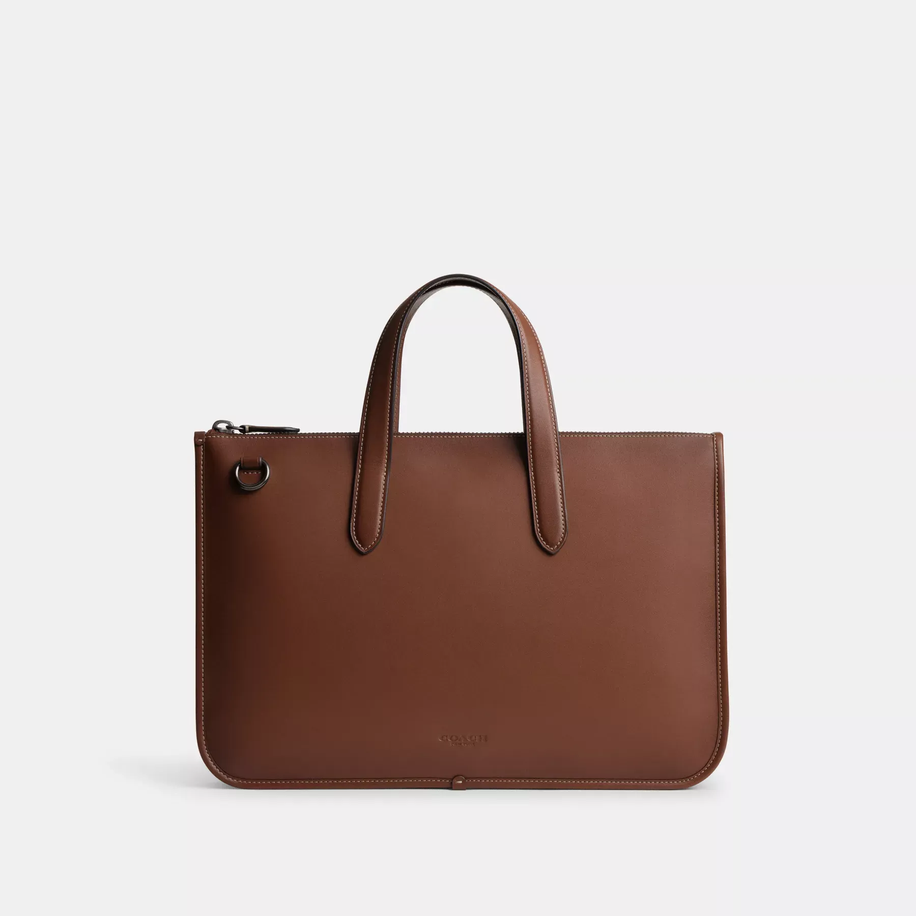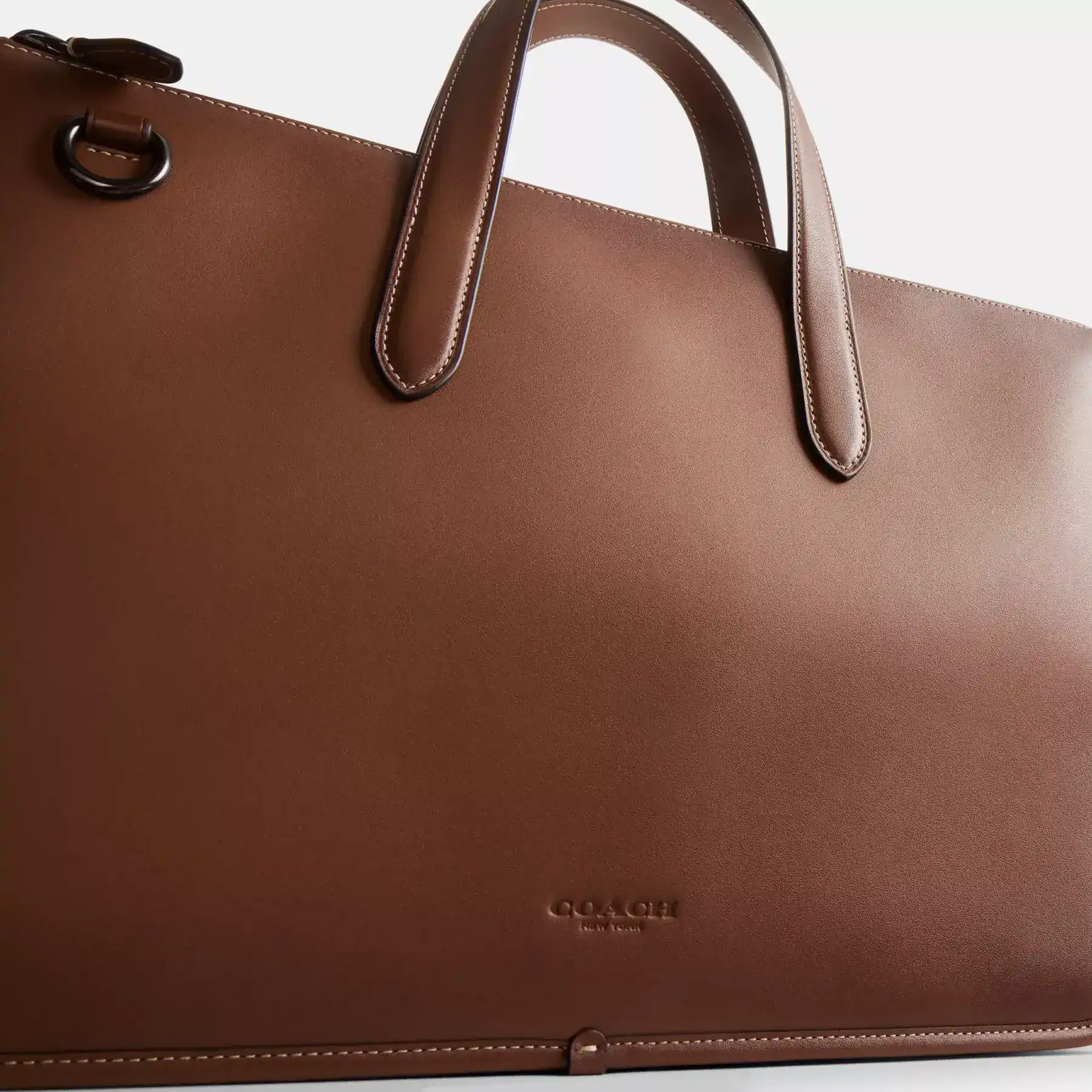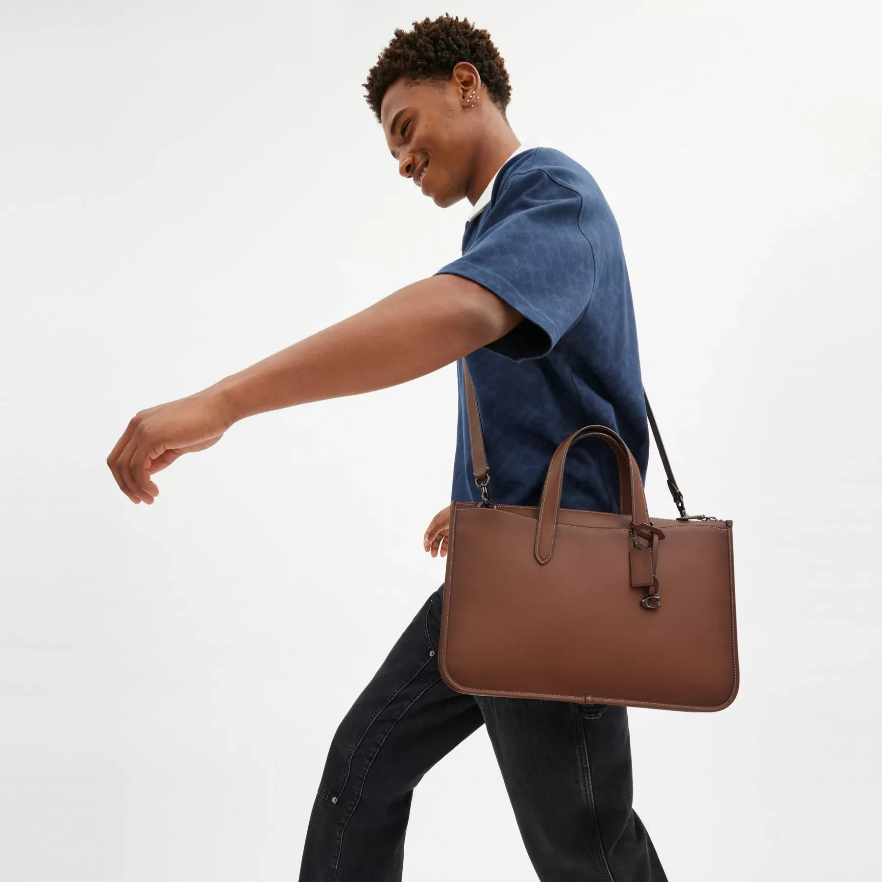 A hardworking business bag, our Isaac is a confident carryall with sleek functionality. With an outside pocket for easy-access items and a secure zip-top closure, it has a spacious interior with room for a 16” laptop and a snap pocket to hold a phone and small essentials. Crafted of our buttery soft glovetanned leather burnished for a handsome well-worn look, the organized style is finished with top handles and a crossbody strap for hands-free wear.