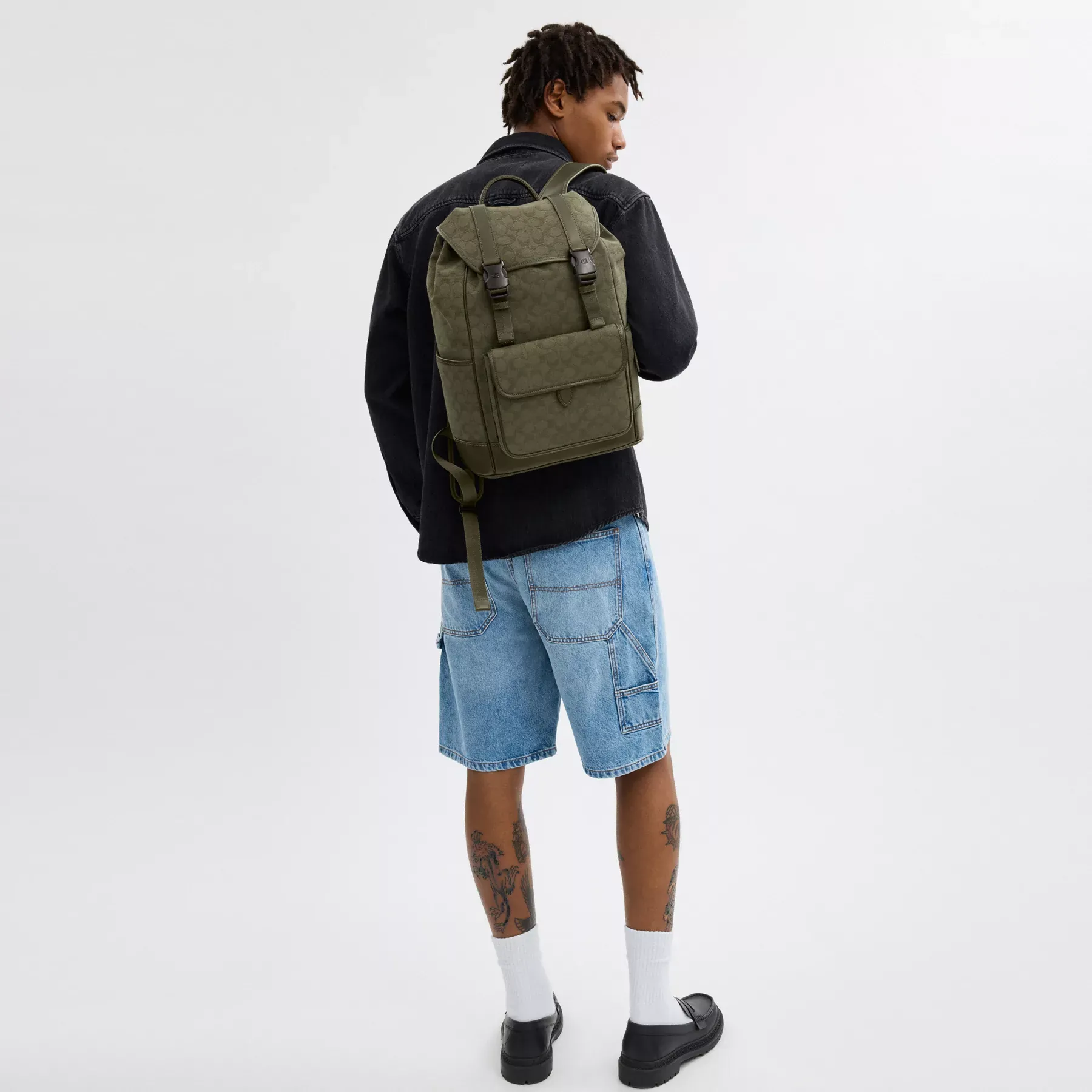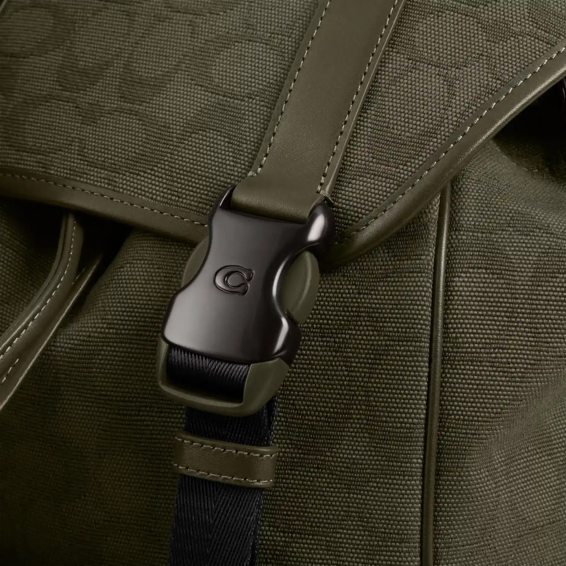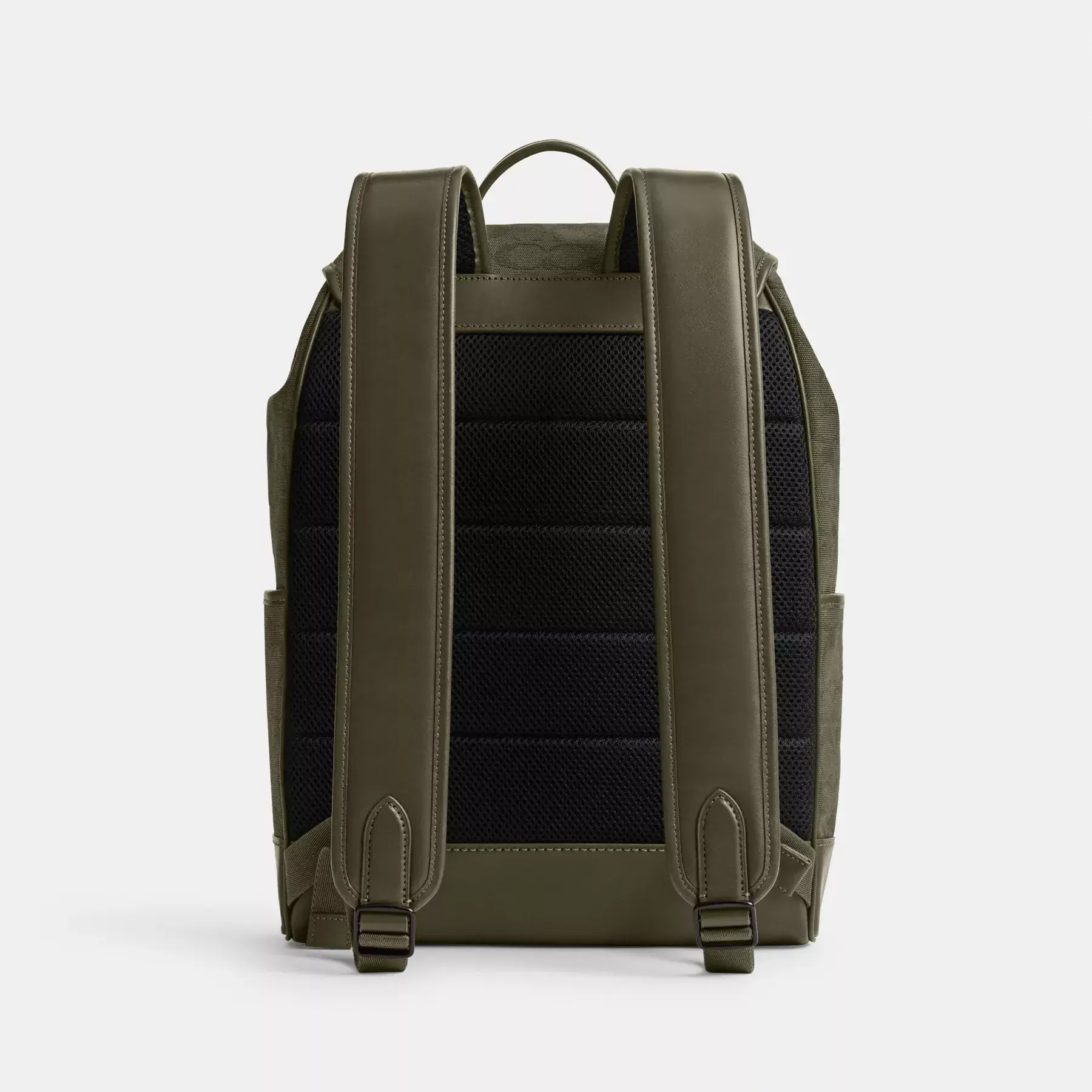 Made for a life in constant motion, the League keeps your game plan on track. Crafted of refined leather and our durable Signature canvas jacquard created from certified organic cotton made without the use of harmful chemical fertilizers or pesticides, this roomy backpack is a comfortable choice for every day with its padded back and straps. Organized with multiple pockets inside and out, the sporty style has a dedicated laptop sleeve and plenty of space for notebooks, water bottles and other essentials. An exterior zipper gives easy access to the main compartment.