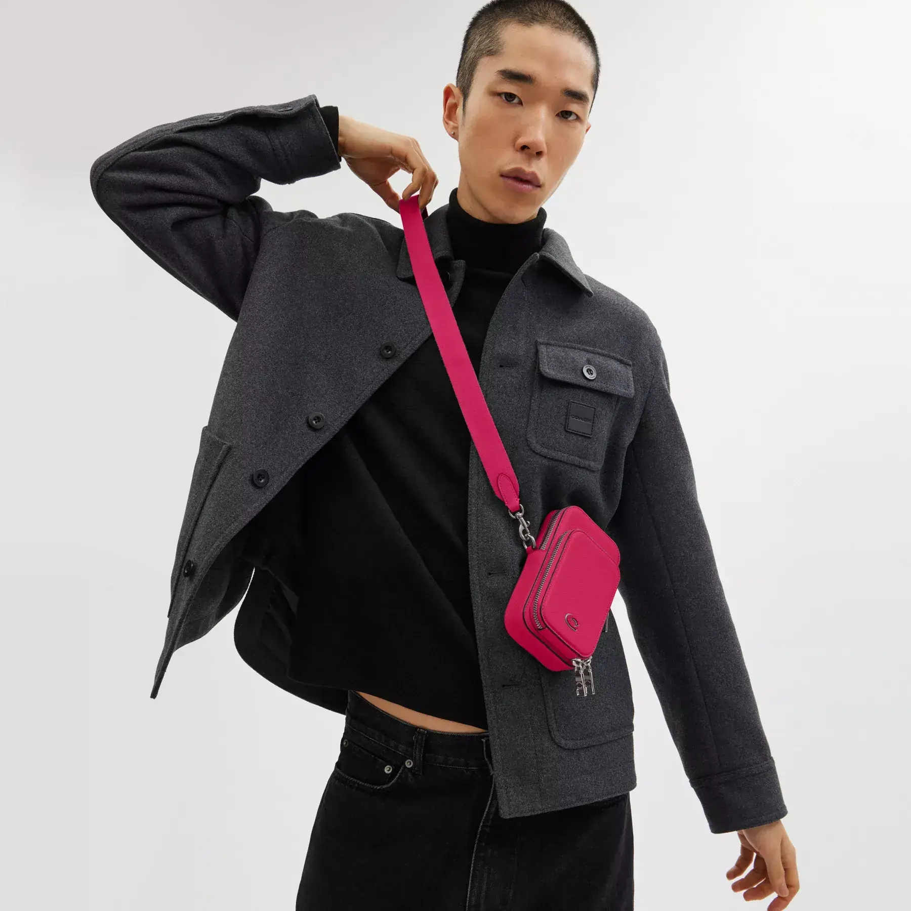 ,The perfect combination of modern minimalist design and understated sophistication, our Phone Crossbody is crafted of durable, scratch-resistant crossgrain leather. Finished with our Signature hardware and a Signature canvas card slot, this compact dual-compartment design is a perfect grab-and-go style with space for your large-size phone, cards, cash and other essentials. Toss into a larger bag for easy organization or wear hands-free with the detachable strap.