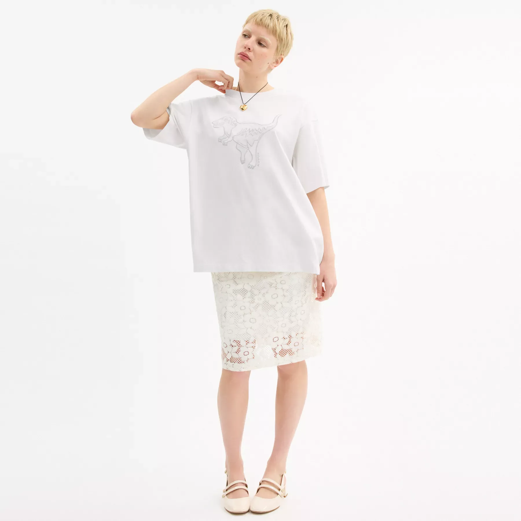 ,Coach mascot Rexy is front and center on this soft T-shirt crafted of organic cotton made without the use of harmful chemical fertilizers and pesticides. The relaxed-fit crewneck adds a fun and ferocious touch to any look.