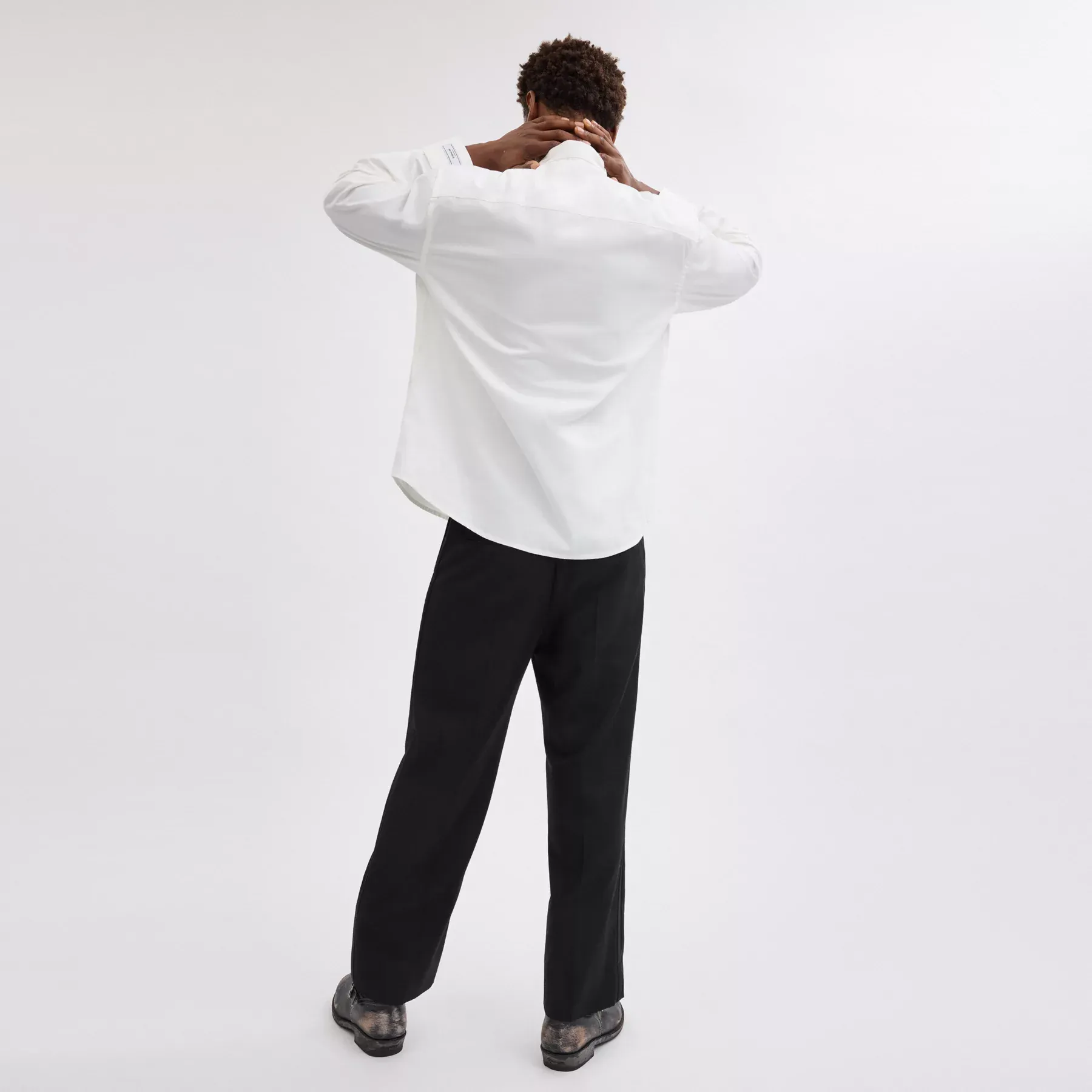 ,A modern take on classic vintage styles, these warm wool trousers feature a relaxed straight-fit and adjustable waist buckles. Detailed with satin tuxedo stripes, the upscale silhouette is finished with slip pockets.