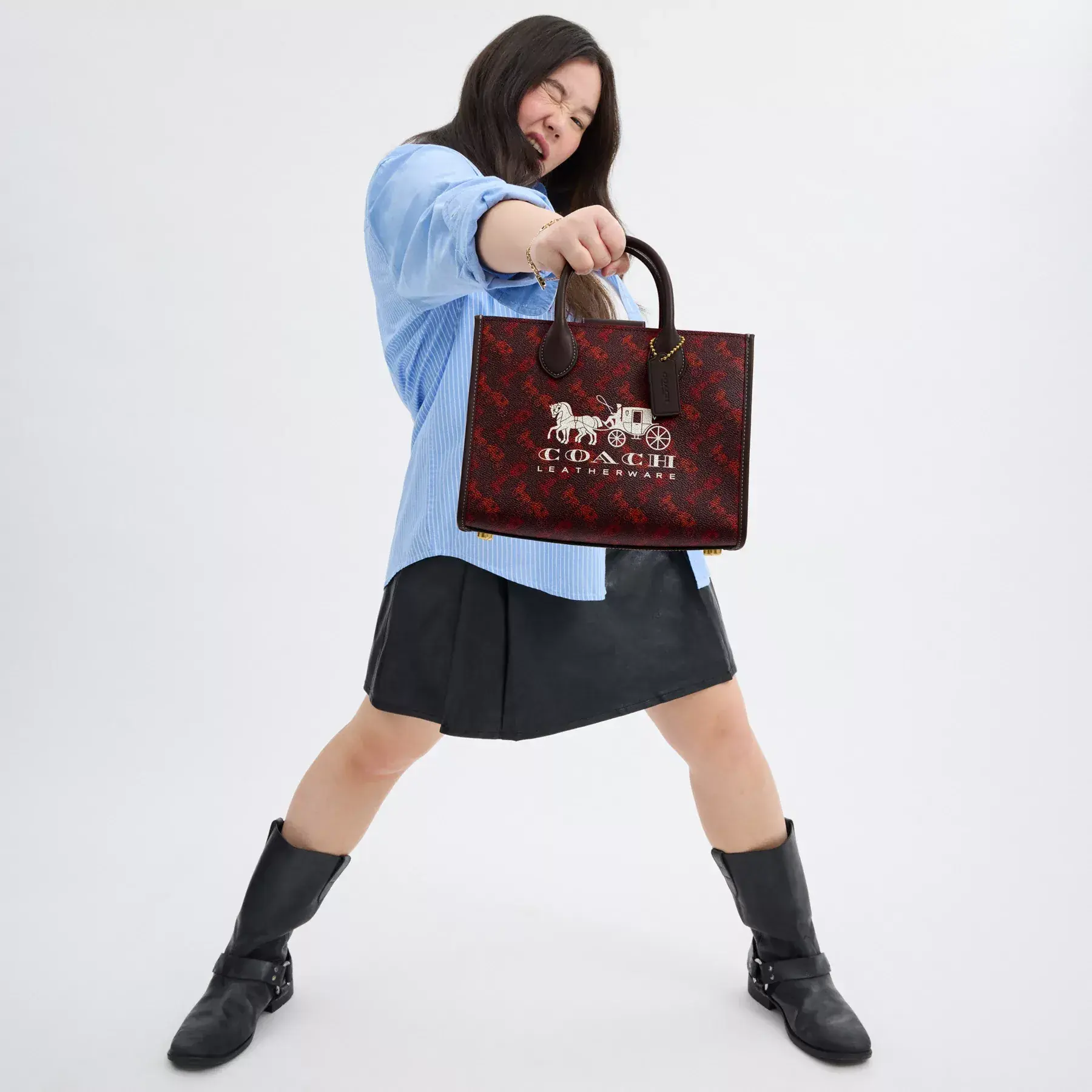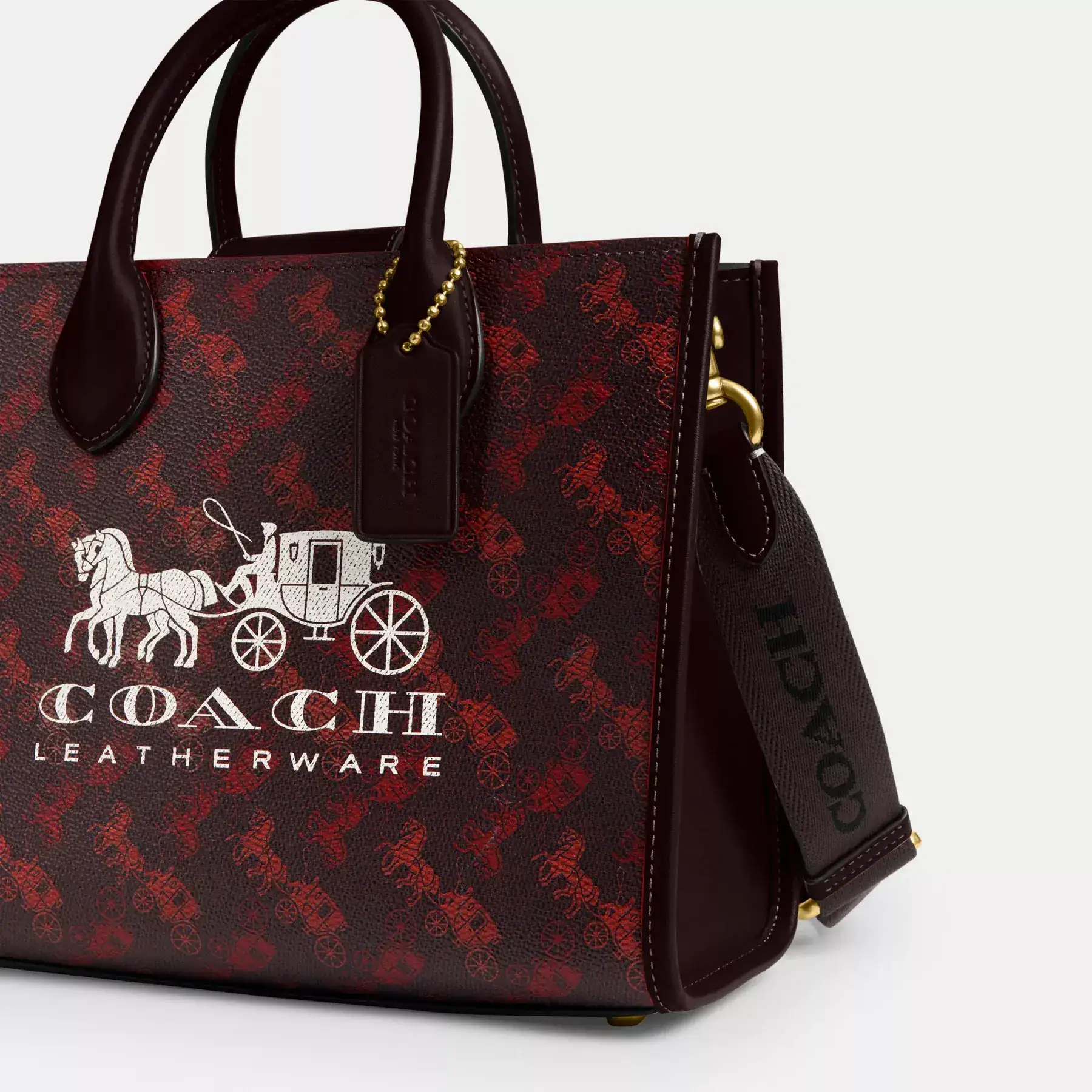 Bring your A game with our Ace Tote, a structured carryall made to hold everything you need for your busy life. Printed with our iconic Horse and Carriage motif, this lightweight 26 is crafted of durable coated canvas and refined leather. Featuring an inside zip pocket to hold small essentials and space for a phone, it’s finished with a detachable strap for hands-free wear on the shoulder or crossbody.