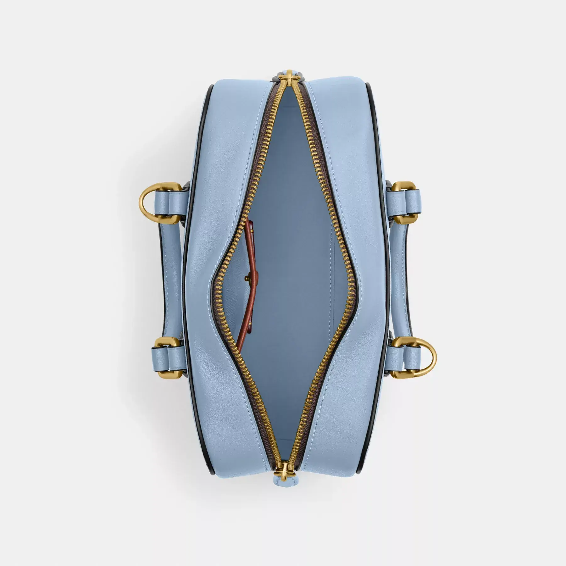 • Zip closure, fabric lining