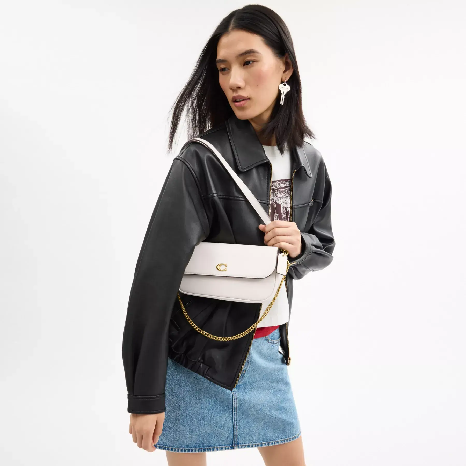 A versatile style for day and night, our flap-front Brook bag has a short gleaming chain strap and a convertible leather strap to wear as a crossbody or doubled up for a shorter, dressier look. With space to hold all the essentials, the rounded refined leather style features a convenient outside pocket and inside multifunction pockets for easy organization.