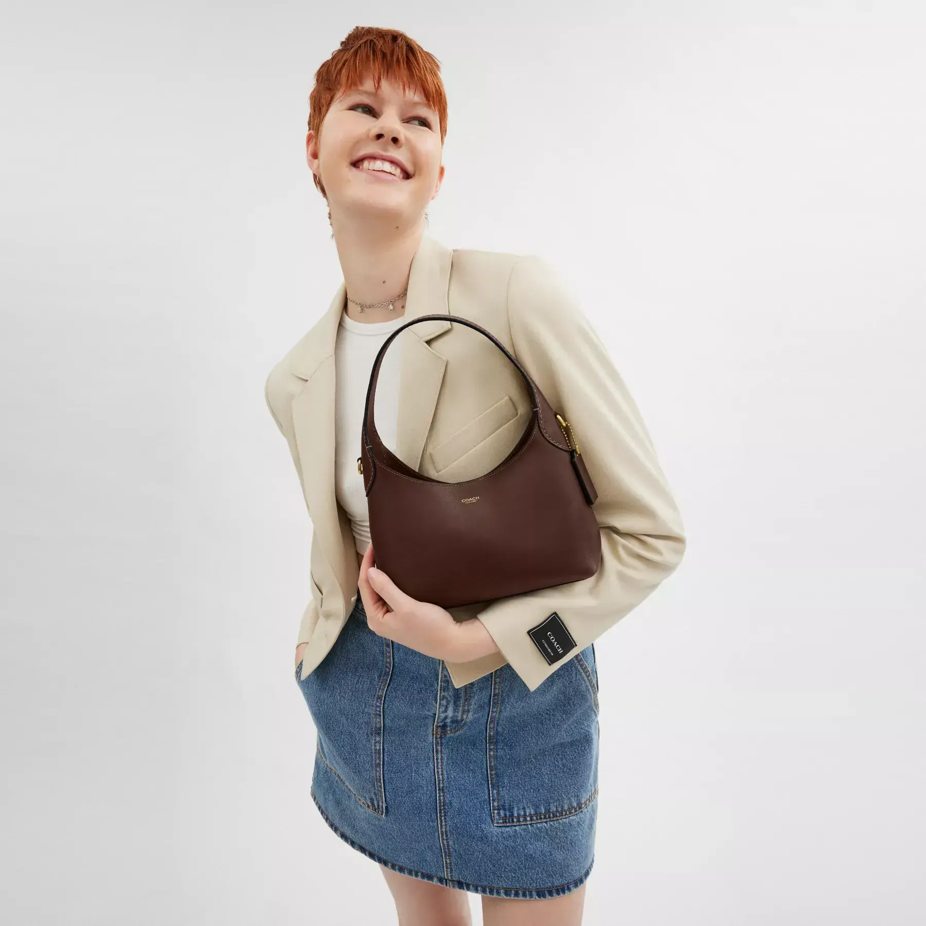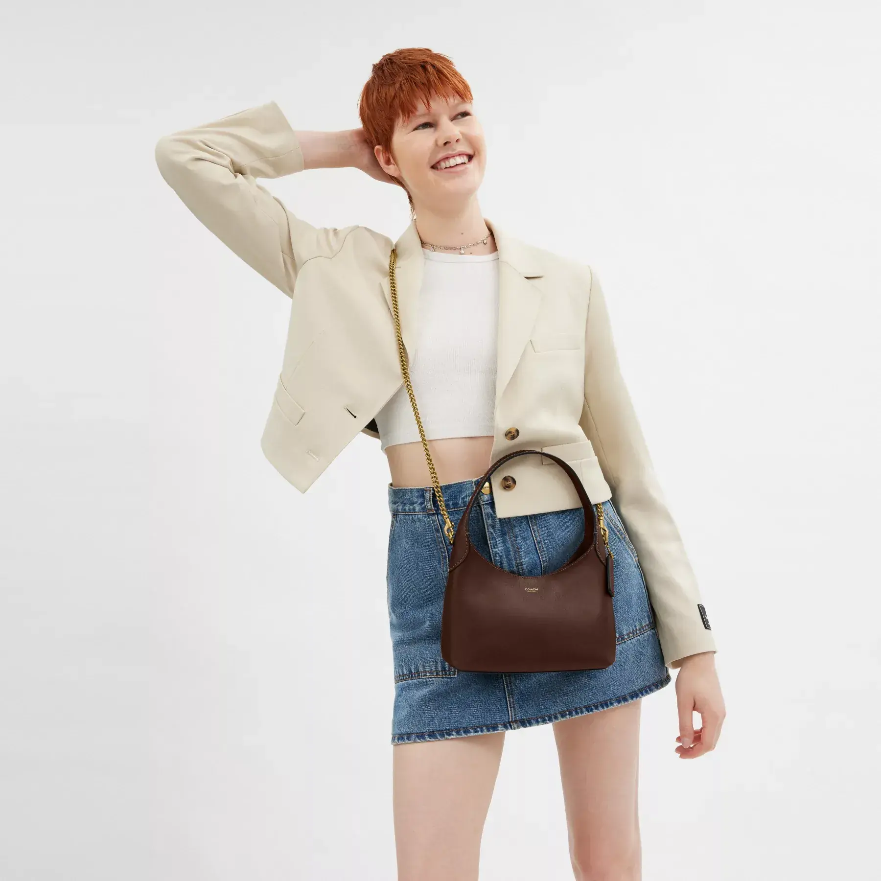 Our Brooklyn is an elegant, minimalist silhouette—with a distinctly New York attitude. A compact silhouette with an easy magnetic closure, the hobo style is crafted of natural grain leather with beautiful texture and soft feel. Featuring room for the essentials and a multifunction pocket for organization, carry it by hand or attach the elegant chain strap to wear on the shoulder or crossbody.