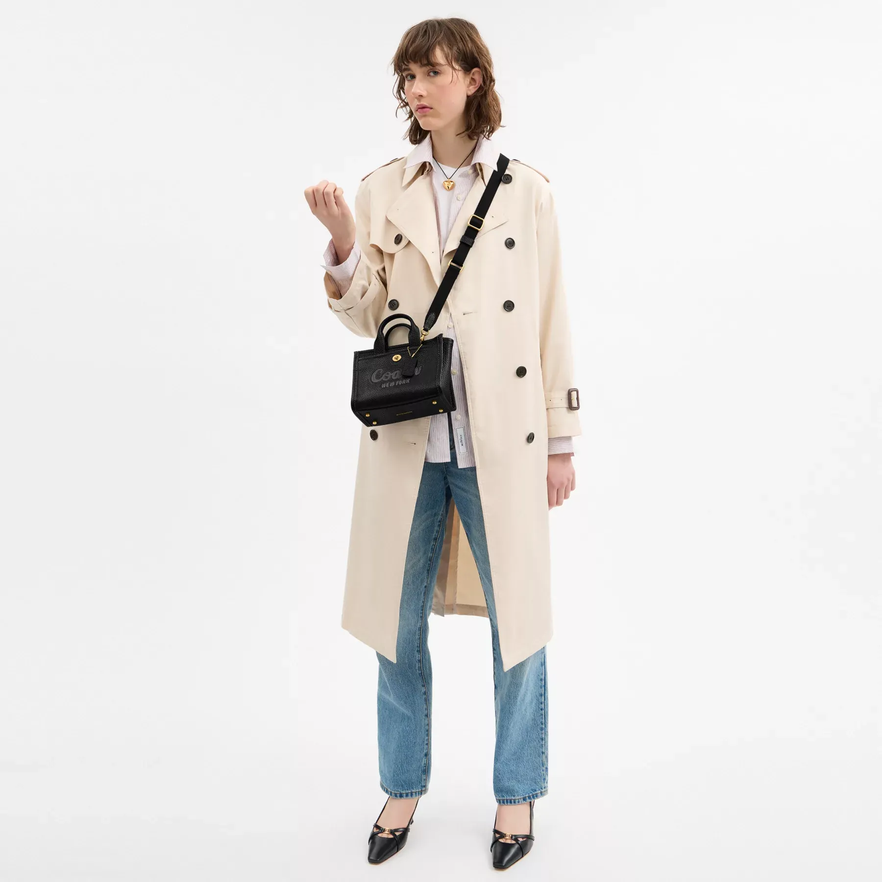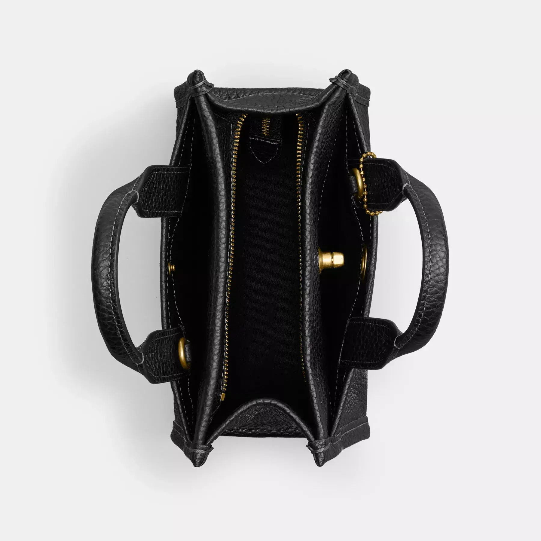 Carry as much (or as little) as you like with our Cargo tote. Detailed with our cursive Coach script embroidery and iconic turnlock closure, this petite embossed pebble leather 20 has an open interior with room for a phone, two outside pockets for easy organization and a removable recycled polyester webbing strap for shoulder or crossbody wear.