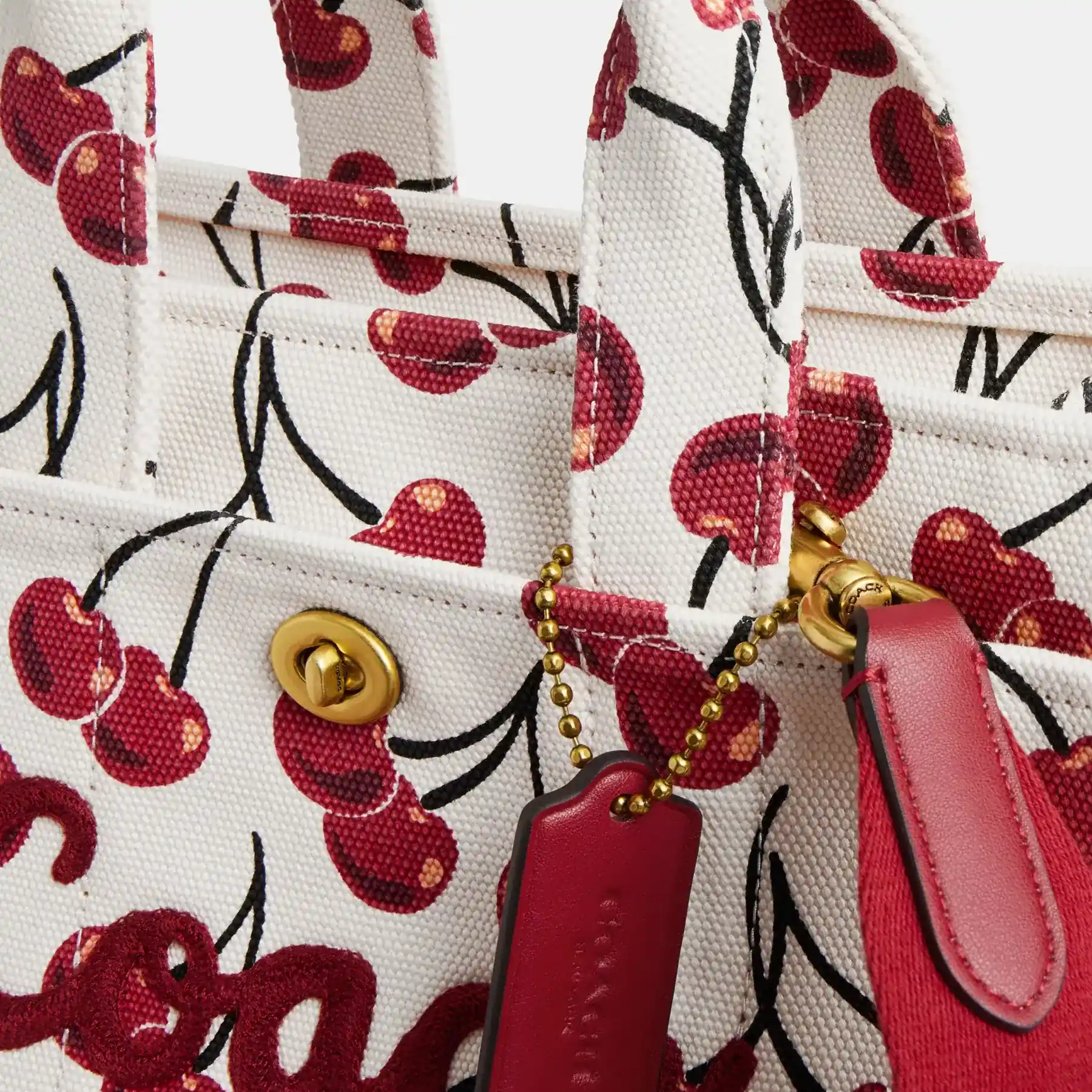 Carry as much (or as little) as you like with our lightweight Cargo tote. Detailed with our cursive Coach script embroidery and iconic turnlock closure, this compact 26 has an open interior with room for an iPad, two outside pockets for easy organization and a removable webbing strap for shoulder or crossbody wear. Printed with a cheerful cherry motif, this versatile canvas style is crafted with 100% cotton* sourced from farms that use regenerative agricultural practices—those that help to maintain and rejuvenate land, increase biological diversity and soil health, and could lead to increased carbon absorption. It’s inspired by our commitment to reducing our impact on the planet. Now no matter where you go with it, you’ll always be toting around a little extra love for the planet.