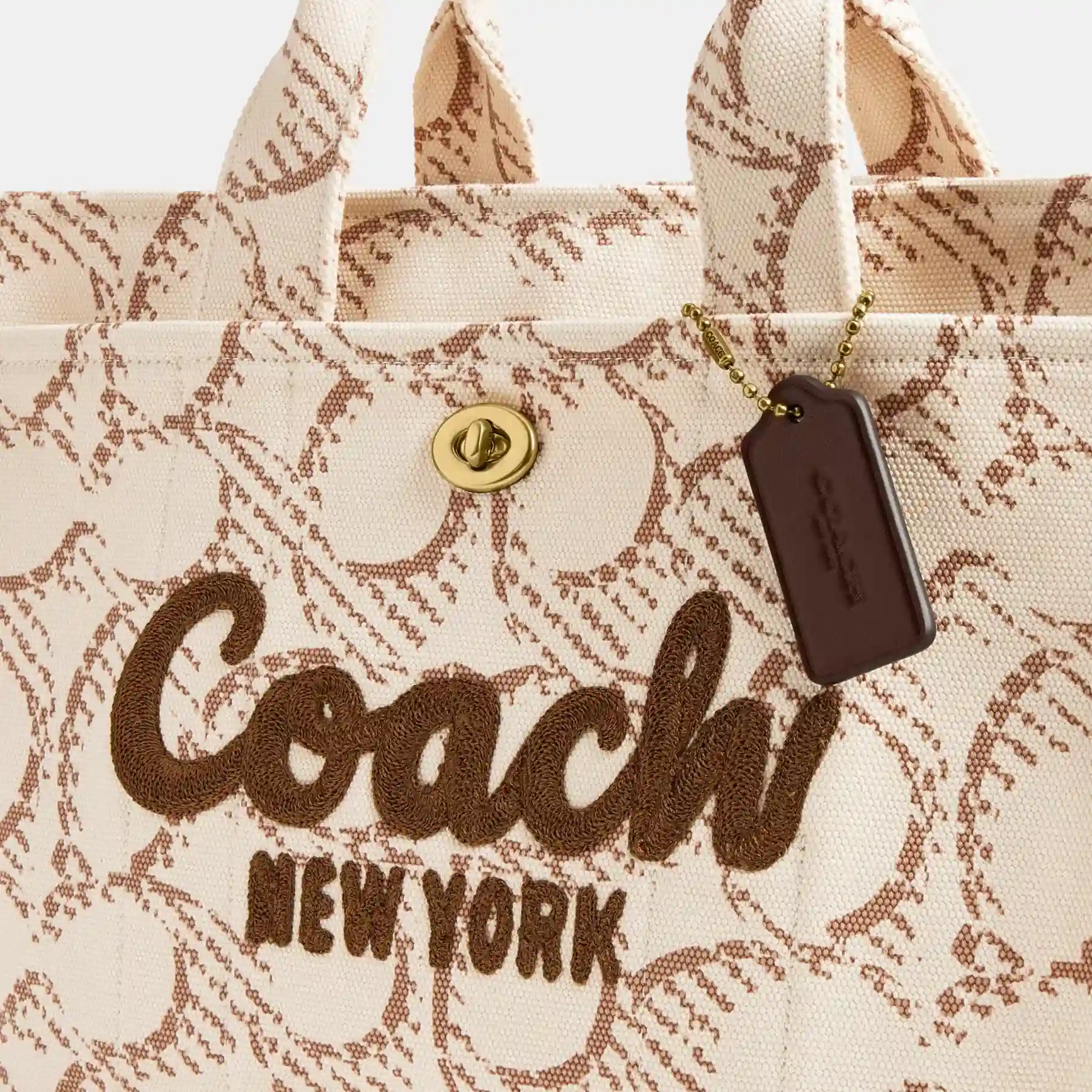 Carry as much (or as little) as you like with our lightweight Cargo tote. Detailed with our cursive Coach script embroidery and iconic turnlock closure, this spacious carryall has an open interior with room for a 13″ laptop, two outside pockets for easy organization and a removable recycled polyester webbing strap for shoulder or crossbody wear. Featuring our Maxi Signature, this versatile canvas style is crafted with cotton* sourced from farms that use regenerative agricultural practices—those that help to maintain and rejuvenate land, increase biological diversity and soil health, and could lead to increased carbon absorption. It’s inspired by our commitment to reducing our impact on the planet. Now no matter where you go with it, you’ll always be toting around a little extra love for the planet.
