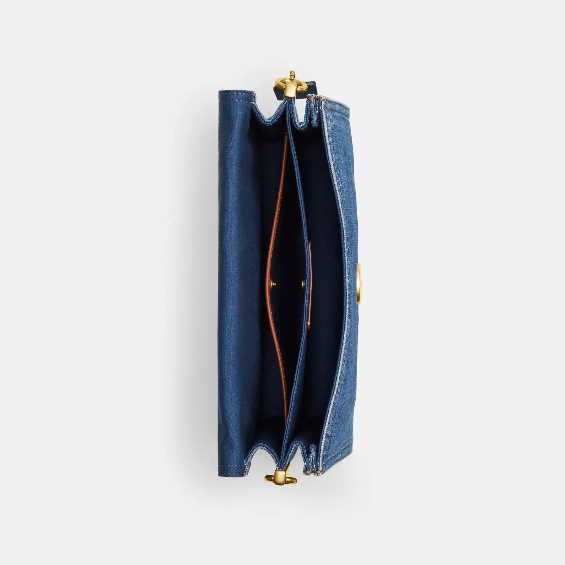 A modern take on an archival 1970s Coach design, our structured washed denim Chain Tabby shoulder bag is detailed with refined leather trim. Finished with our Signature hardware for an iconic touch, the roomy 30 has space for all the essentials including an iPad, inside multifunction organizational pockets and a convenient outside zip pocket for easy access items. The versatile design features three detachable straps to carry by hand, wear snug on the shoulder with the elegant stitched chain-link strap and short leather strap or go hands-free with the long leather crossbody strap.