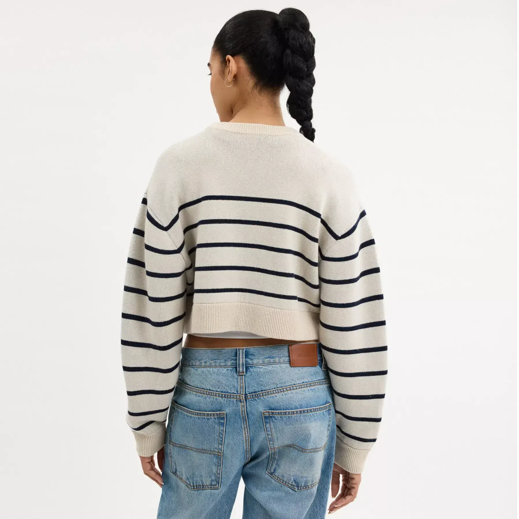 Cursive Signature Striped Cropped Sweater