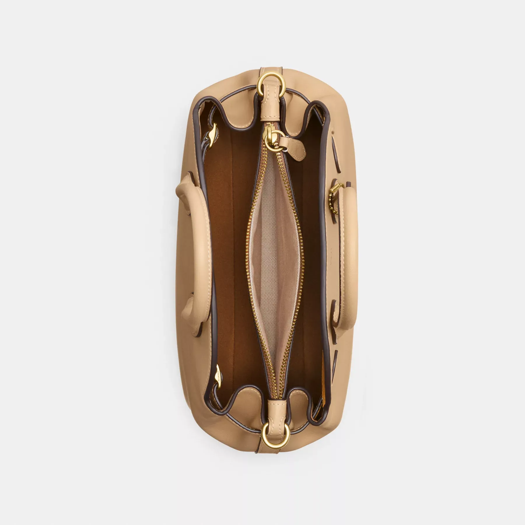A vintage-inspired silhouette, our Empire Carryall is designed with a New York state of mind—and attitude. Crafted of our buttery soft glovetanned leather, the roomy 26 features a secure interior center-zip compartment, two easy-access open sections and a zip pocket to hold essentials. Finished with interior buckles to expand the side gussets when you need a little more room, carry by the top handles or wear hands-free with the detachable crossbody strap.