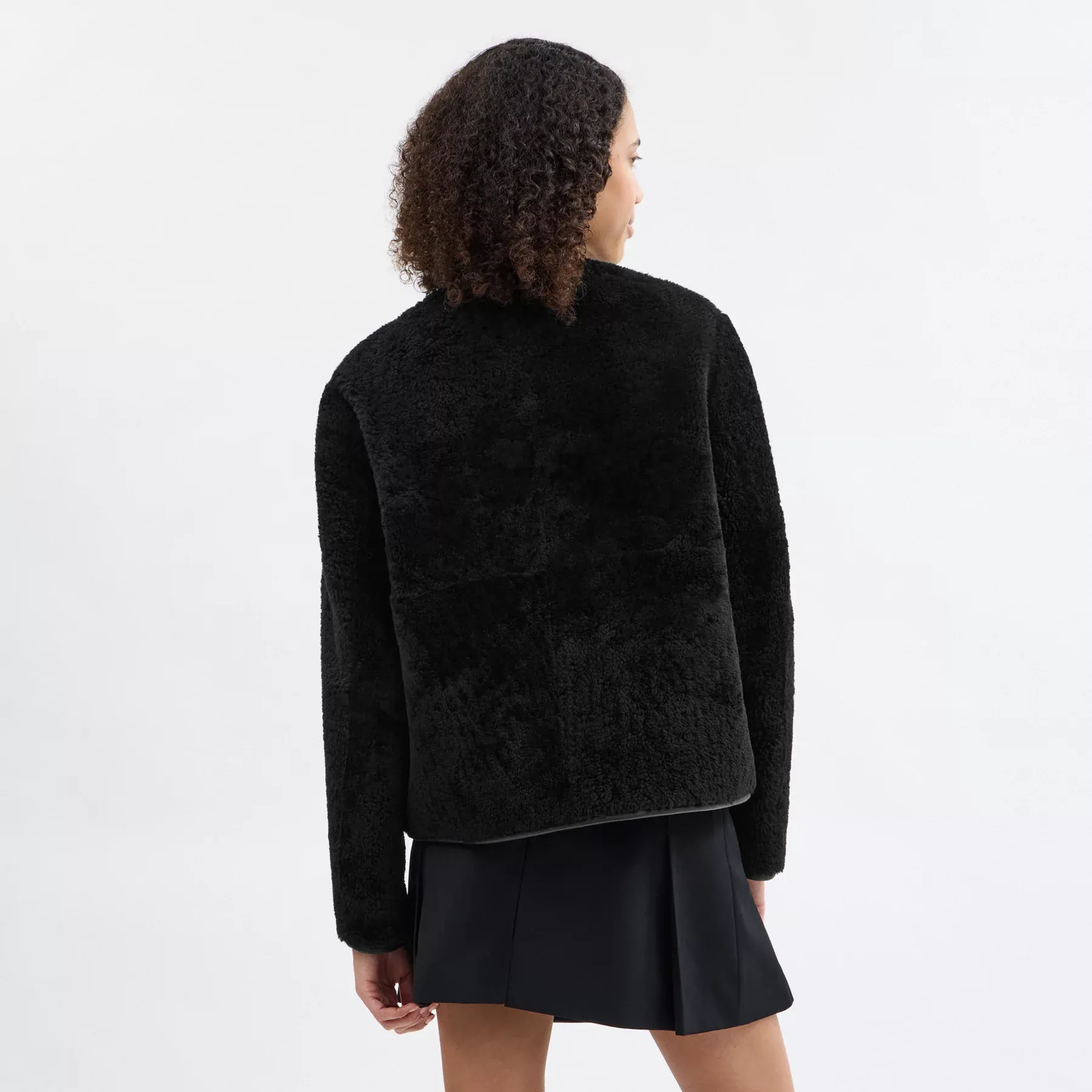 ,A perfect mix of cozy and chic, this collarless coat is crafted of super soft shearling. The relaxed-fit design features large patch pockets and our Signature enamel buttons.