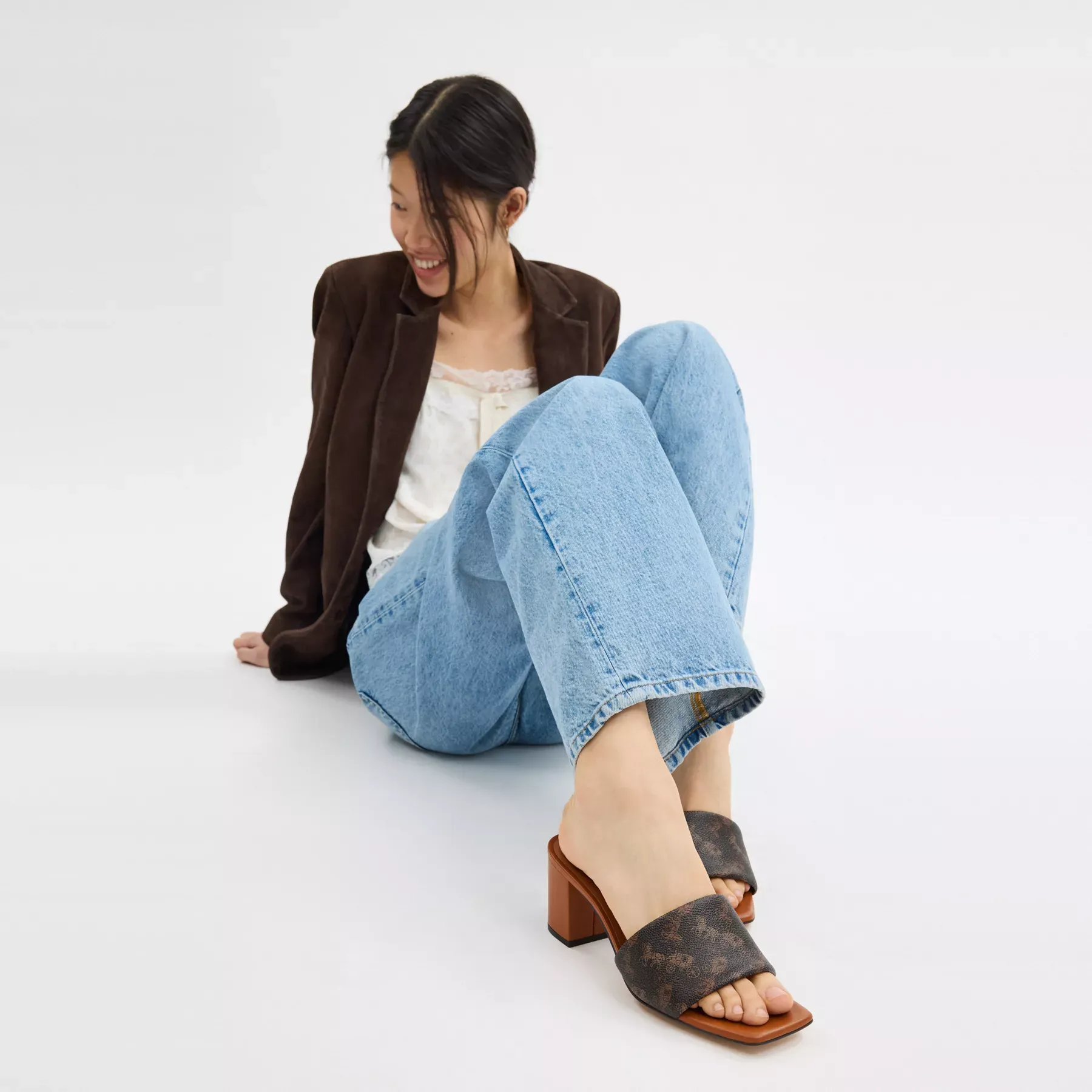 Holly Block Heel Sandal With Horse And Carriage Print