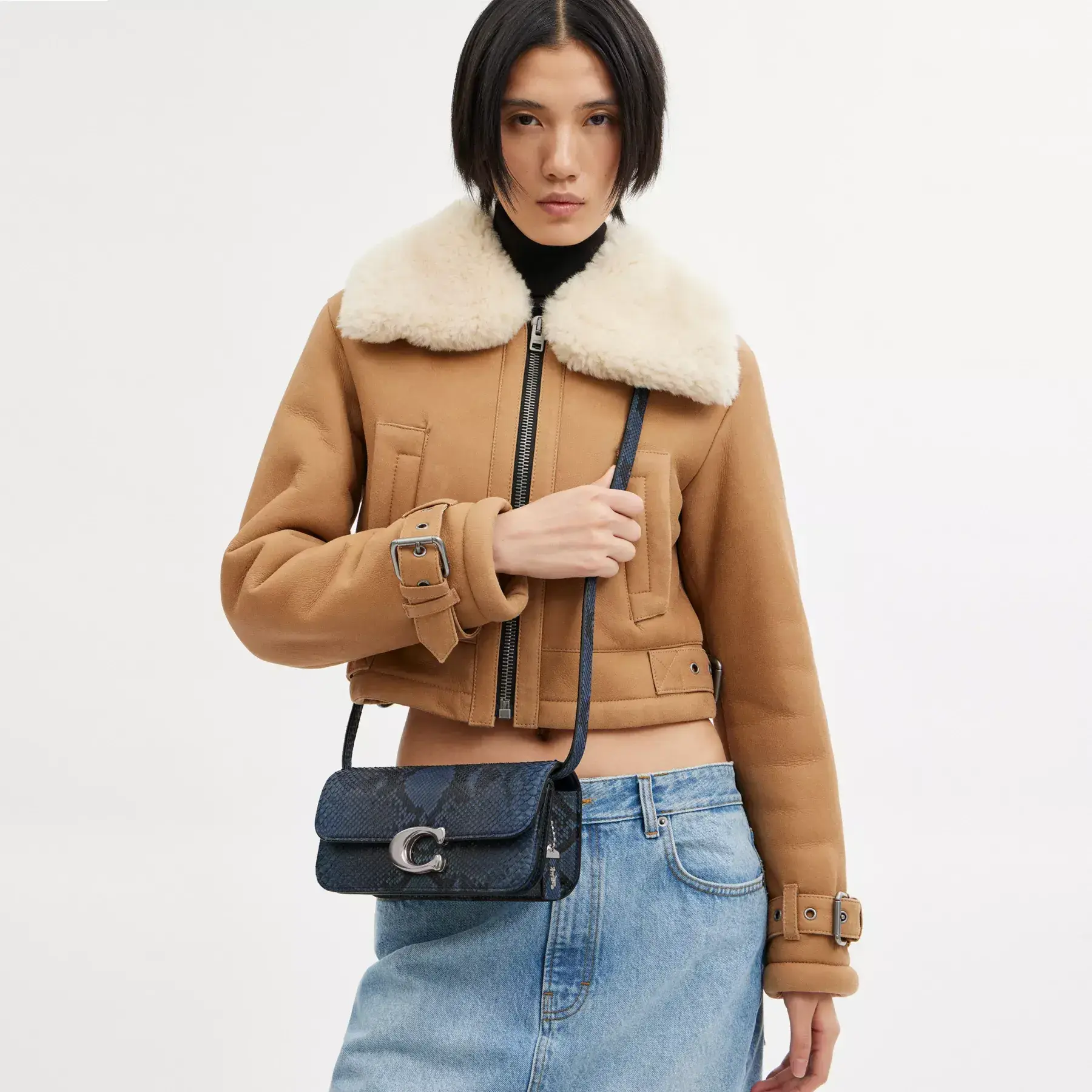 An every day superstar, our Idol is one major mini bag. Crafted of luxurious genuine python, minimally tanned to emphasize its natural beauty and unique markings, the long and lean 23 features an oversized magnetic “C” closure. Perfectly sized for all of your essentials with a gusseted interior and outside pocket, it’s finished with a detachable crossbody strap and a chunky chain-link strap (for when you’re feeling a little fancy).