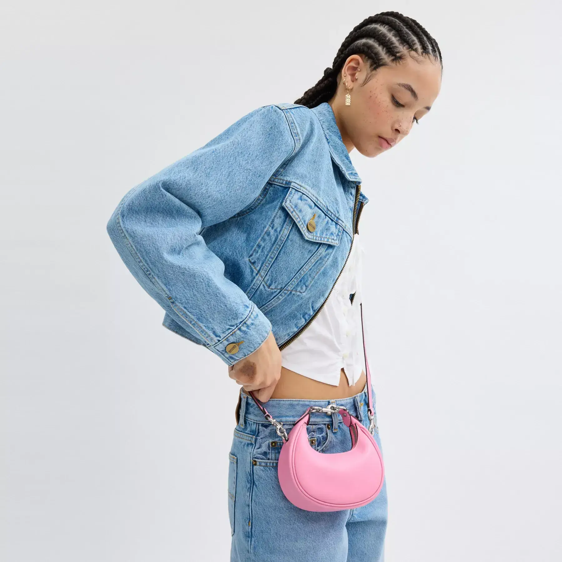 Ahead of the curve, our Jonie is a rounded style that’s part crescent silhouette, part hobo and all attitude. The compact style is crafted of buttery soft glovetanned leather and finished with a secure zip-top closure detailed with our C hardware. Carry by hand and wear as a wristlet with the interlocking top handle for nights out or add the detachable leather crossbody strap for days on the go. (Explore the possibilities.)
