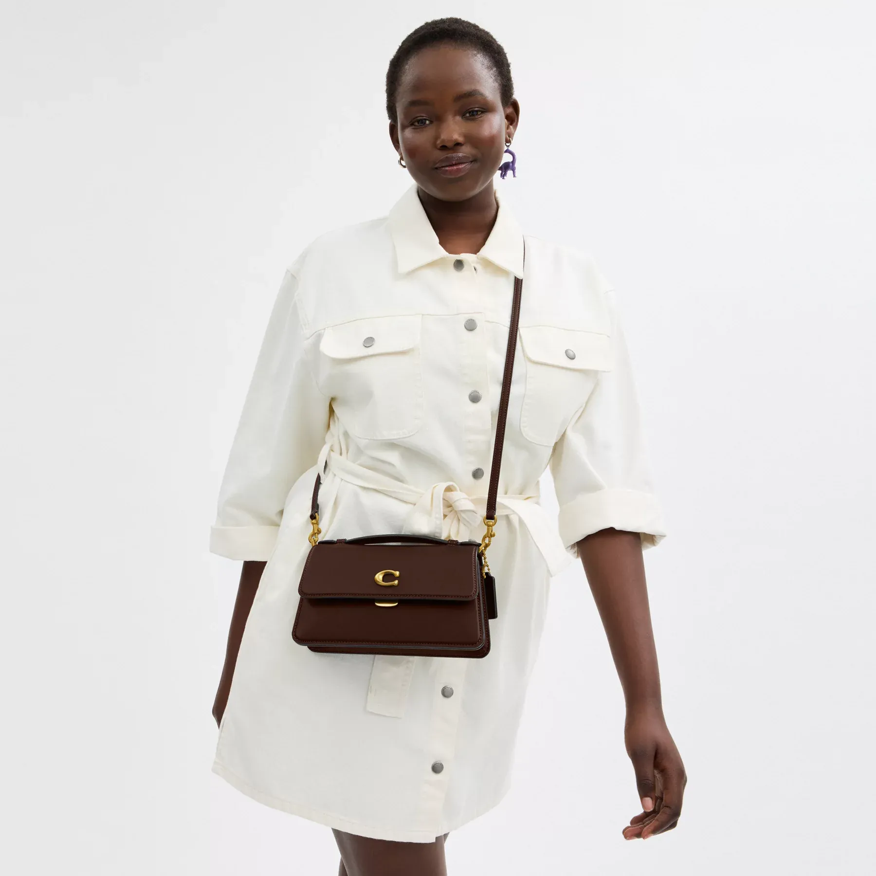 A see and be seen bag, Juno adds instant sophistication to any look with its structured silhouette. Crafted of buttery soft glovetanned leather detailed with our Signature hardware, it features pockets inside and out for easy organization. Carry the top-handle design by hand, or wear as a shoulder bag and crossbody with the detachable straps. (It’s effortless, made elevated.)