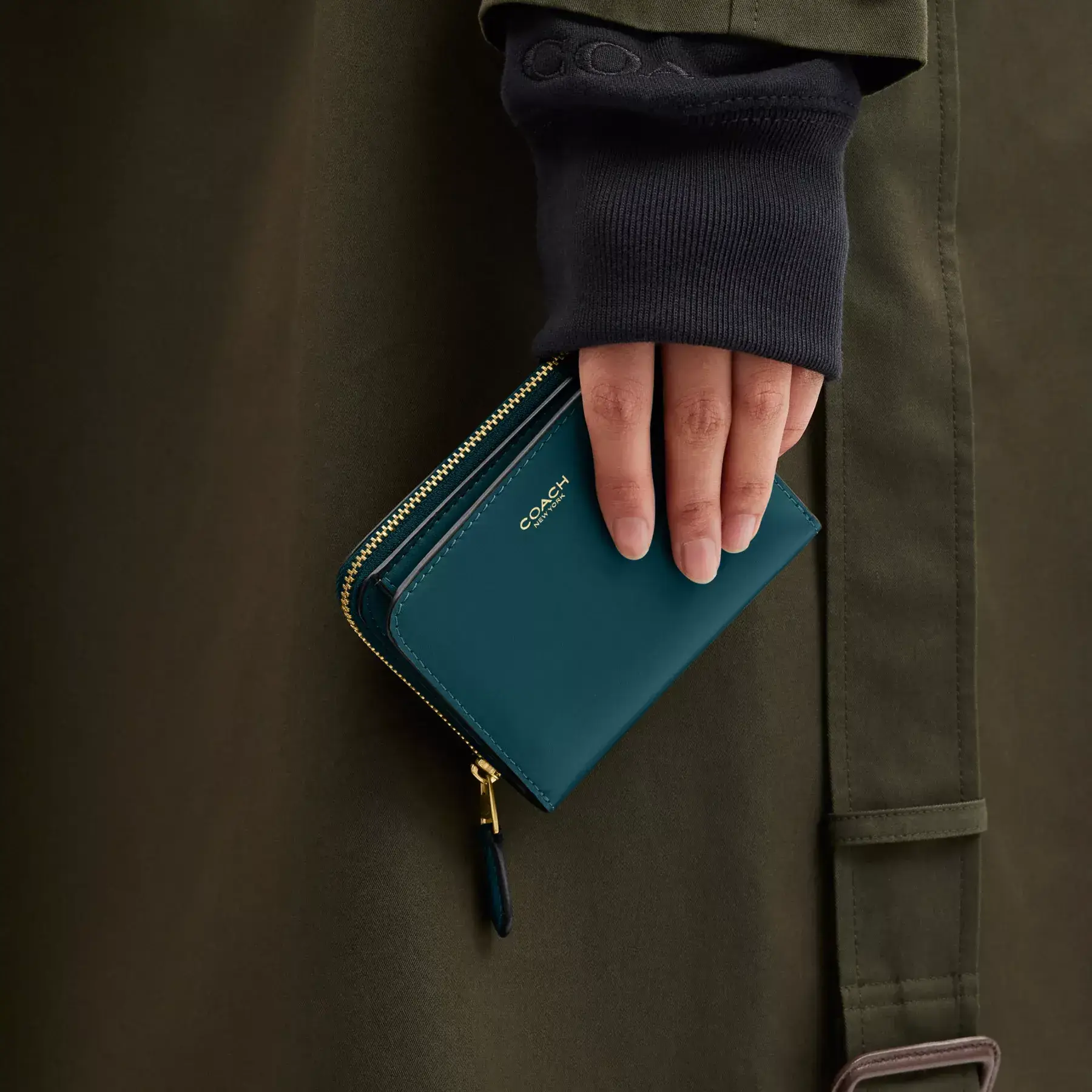 Crafted of refined leather, this compact billfold wallet features a convenient exterior zip pocket for coins, receipts, earbuds and other small essentials. It unsnaps to reveal eight card slots and a full-length bill compartment.