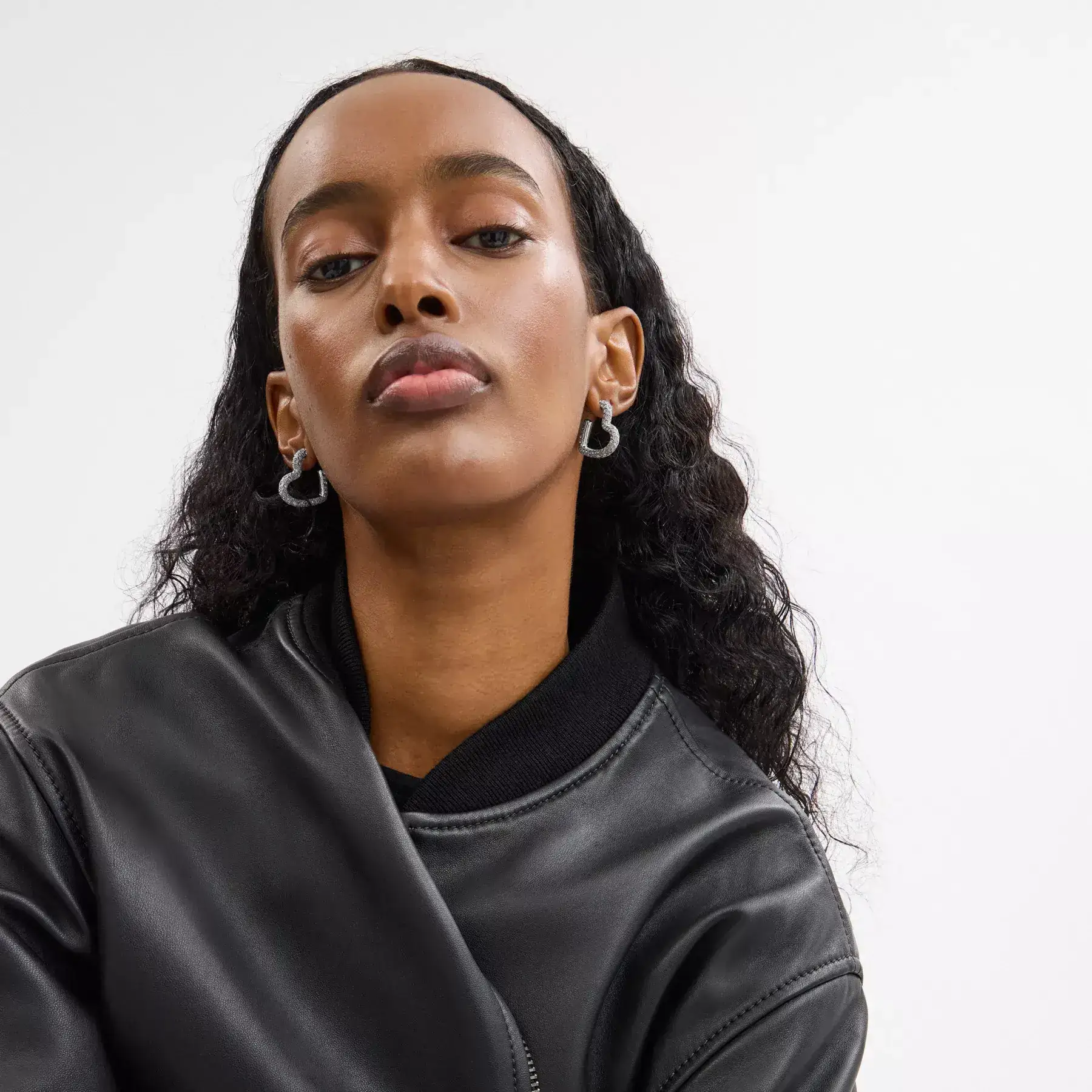 Spread some love. Sparkling with pavé crystals, these heart hoop earrings are finished with a hypoallergenic titanium post and round clutch closure.