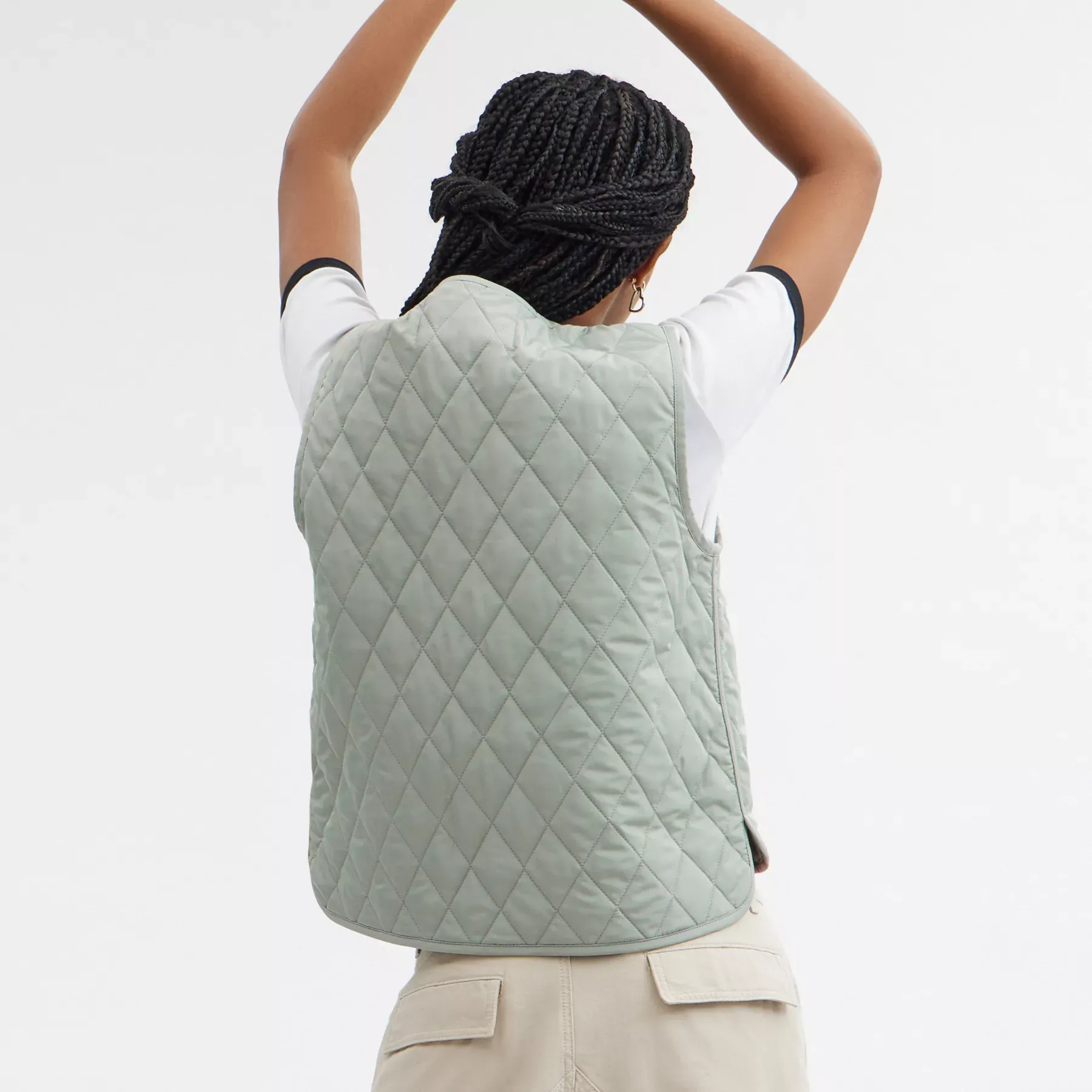 - Model is 5’10” (178cm), chest 31″ (79cm), waist 24″ (61cm), hips 35″ (89cm) and wears a size S
