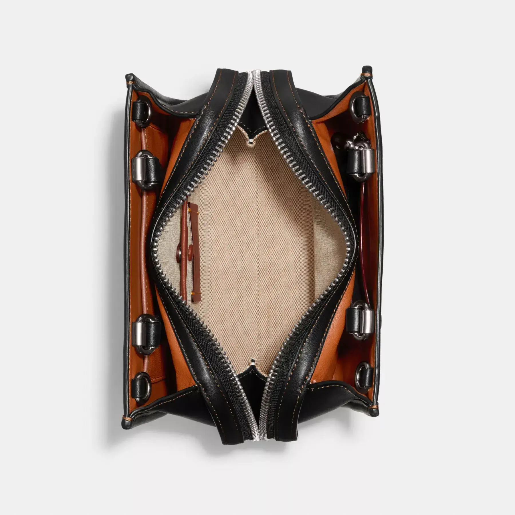 • Zip closure, fabric and leather lining