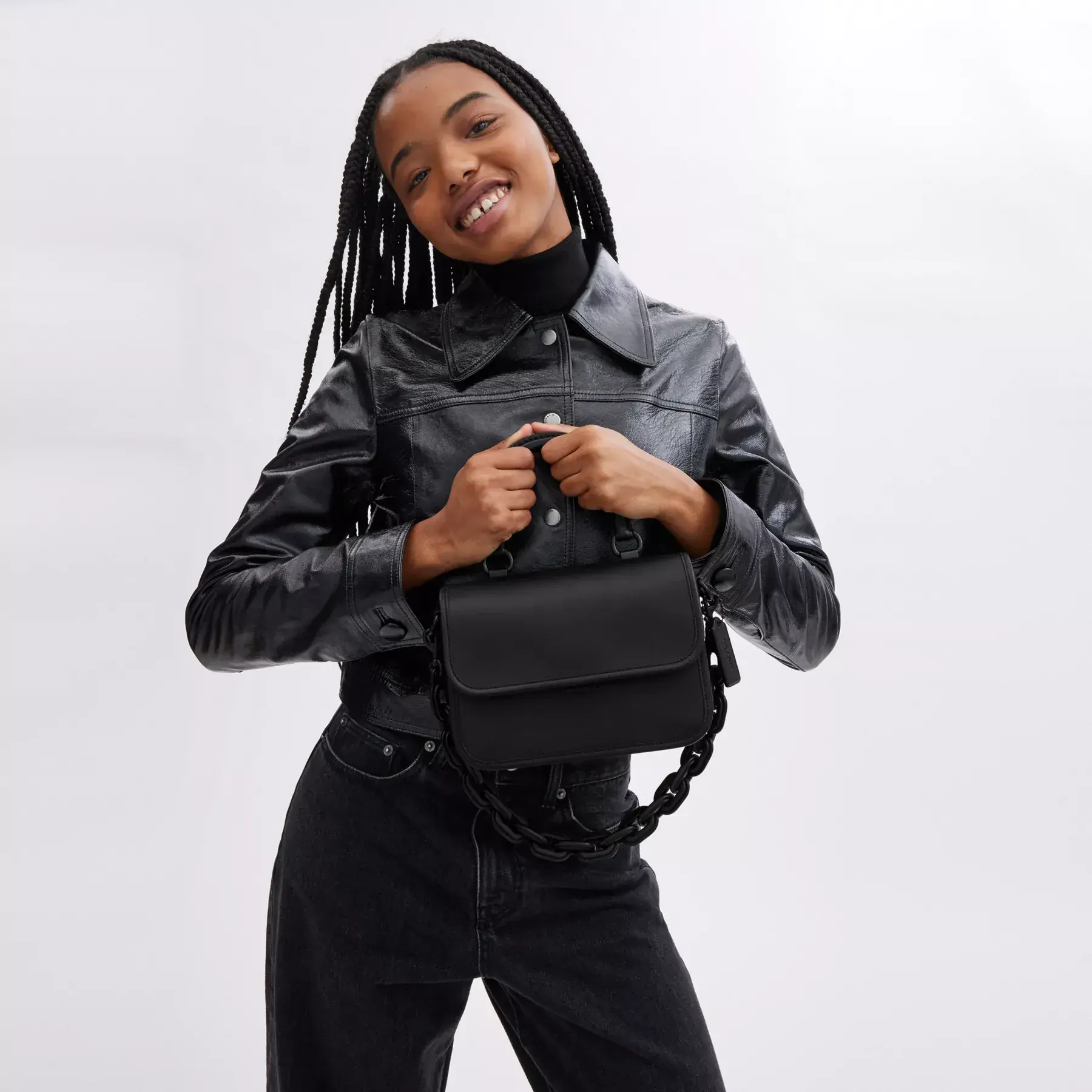 • Detachable leather chain strap with 23cm drop