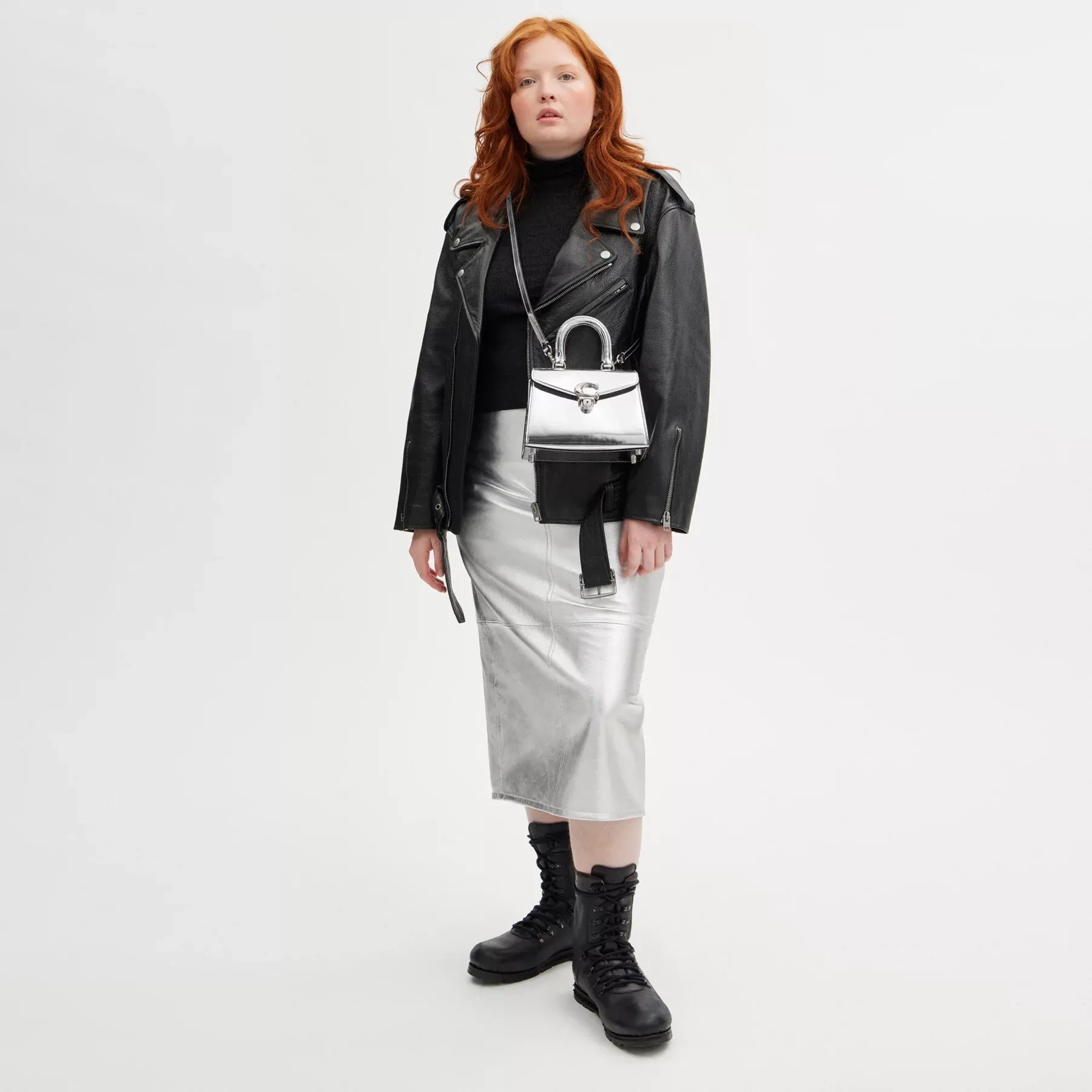 A modern interpretation of a classic design, our Sammy is a timeless style that you’ll love (and wear) for years to come. Finished with an archive-inspired Signature push-lock closure and our Rogue luggage top handle, the compact 21 has expandable side gussets, space for the largest iPhone and plenty of pockets to keep you organized on the go. Crafted of lustrous mirror metallic leather, wear crossbody with the detachable strap. (Feels good to feel put-together, doesn’t it?)
