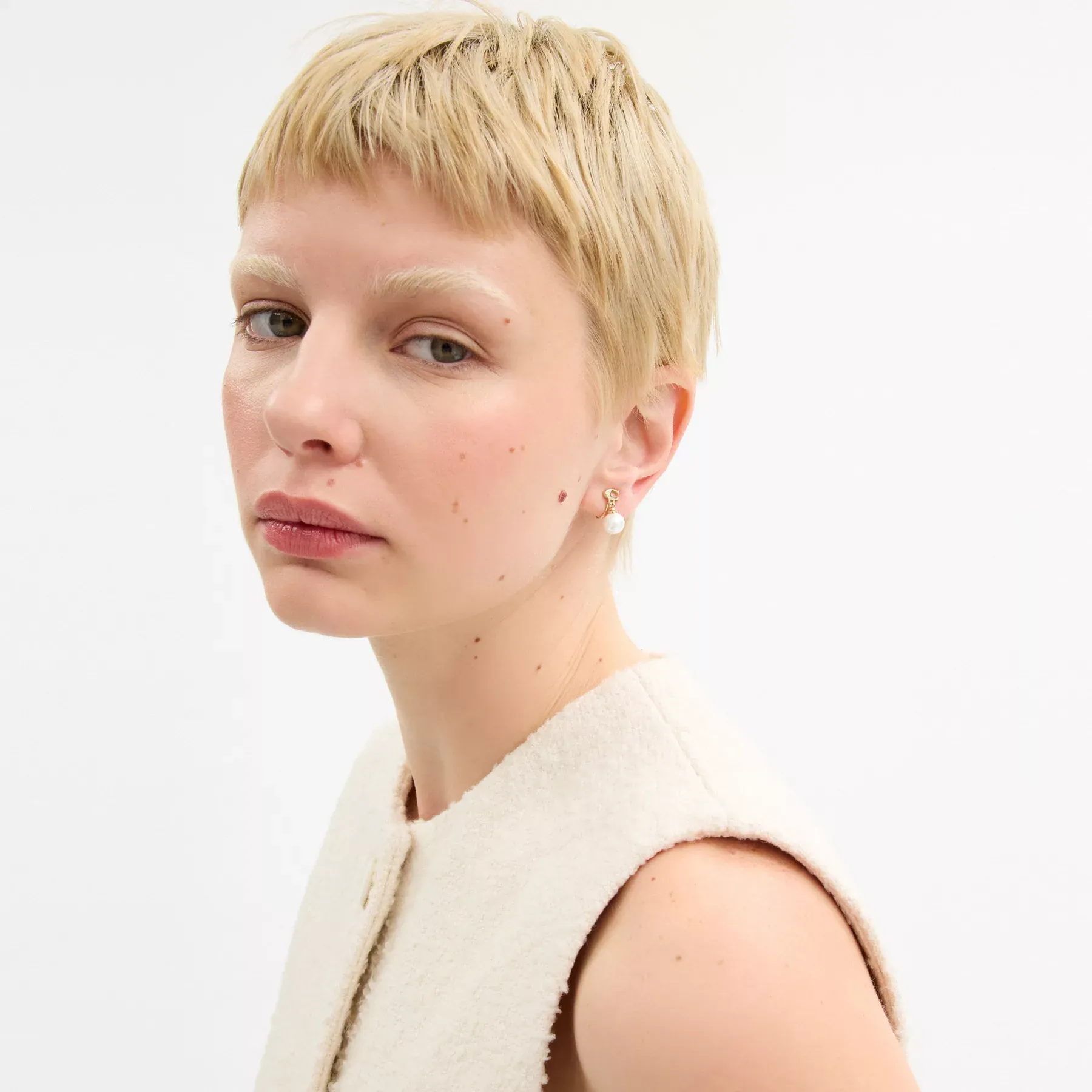 These minimalist clip-on drop earrings feature a luminous glass pearl dangling from our Signature stud. They add a subtle heritage touch to any look.