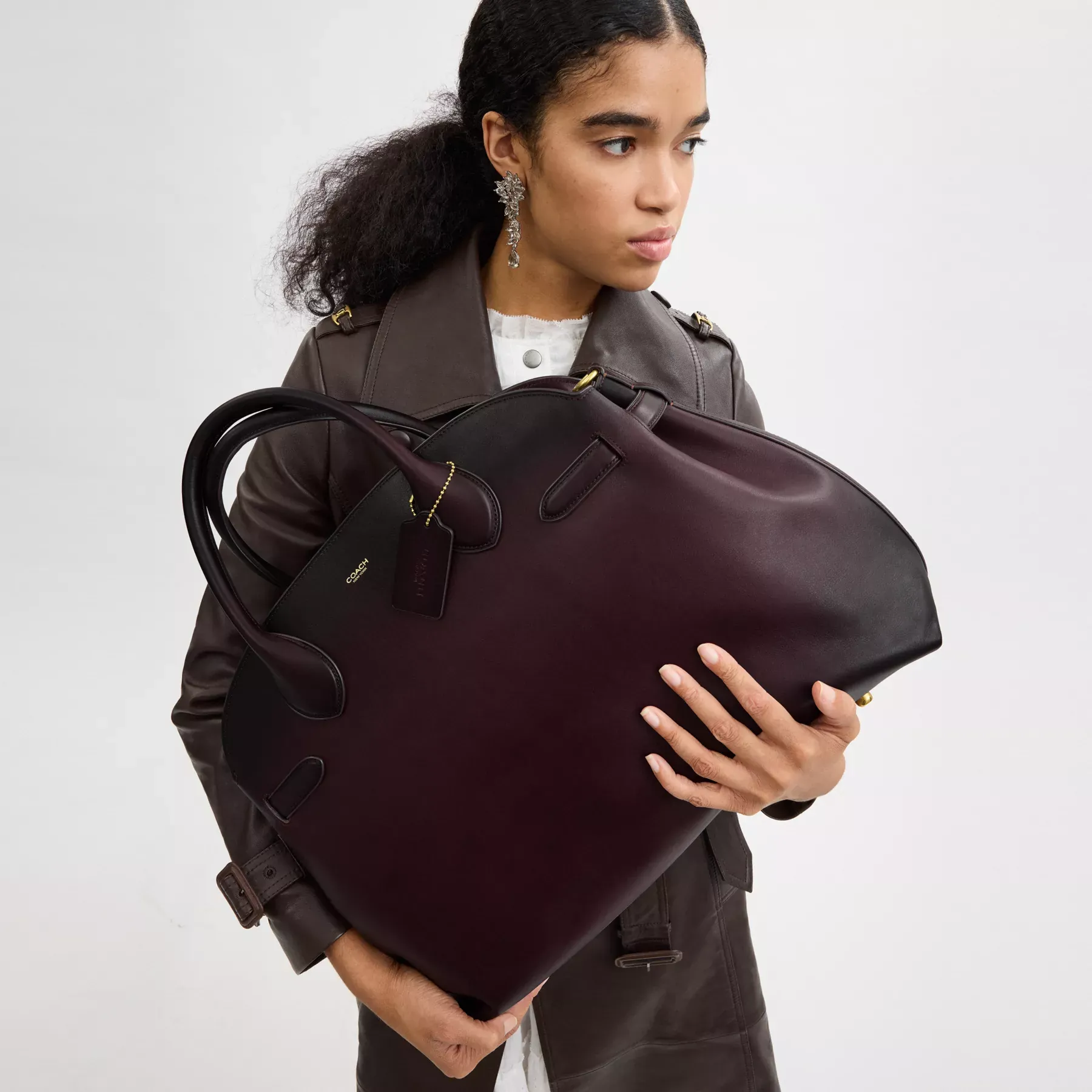A vintage-inspired silhouette, our Empire Carryall is designed with a New York state of mind—and attitude. Crafted of natural grain leather with beautiful texture and soft feel, the sizeable 48 is great for everyday or overnight featuring a roomy open compartment with space for 16” laptop and a zip pocket to hold essentials. Finished with a zip-top closure and interior buckles to expand the side gussets for increased capacity, carry by the top handles or wear hands-free with the detachable crossbody strap.