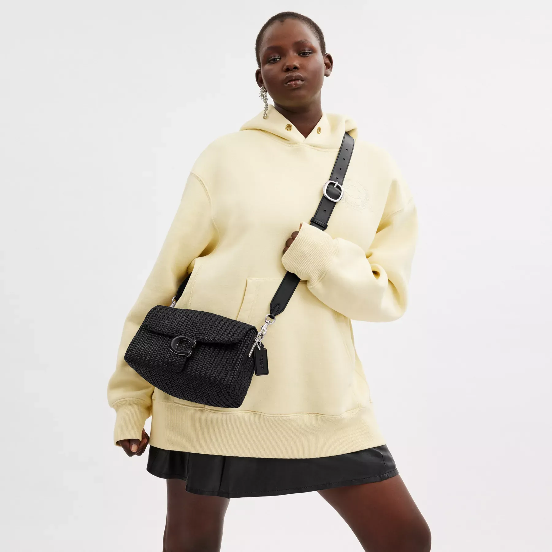 The Soft Tabby reimagines our structured take on an archival 1970s Coach design with a slouchy relaxed feel. Finished with our leather-covered Signature hardware for an iconic touch, this woven shoulder bag features zip pockets inside and out to organize small accessories and two detachable straps to carry by hand, style as a short shoulder bag or wear crossbody. A nod to our heritage Coach craftsmanship, the bag’s supple leather laces are weaved by hand on a wooden mold in a process that takes up to 26 hours to complete.