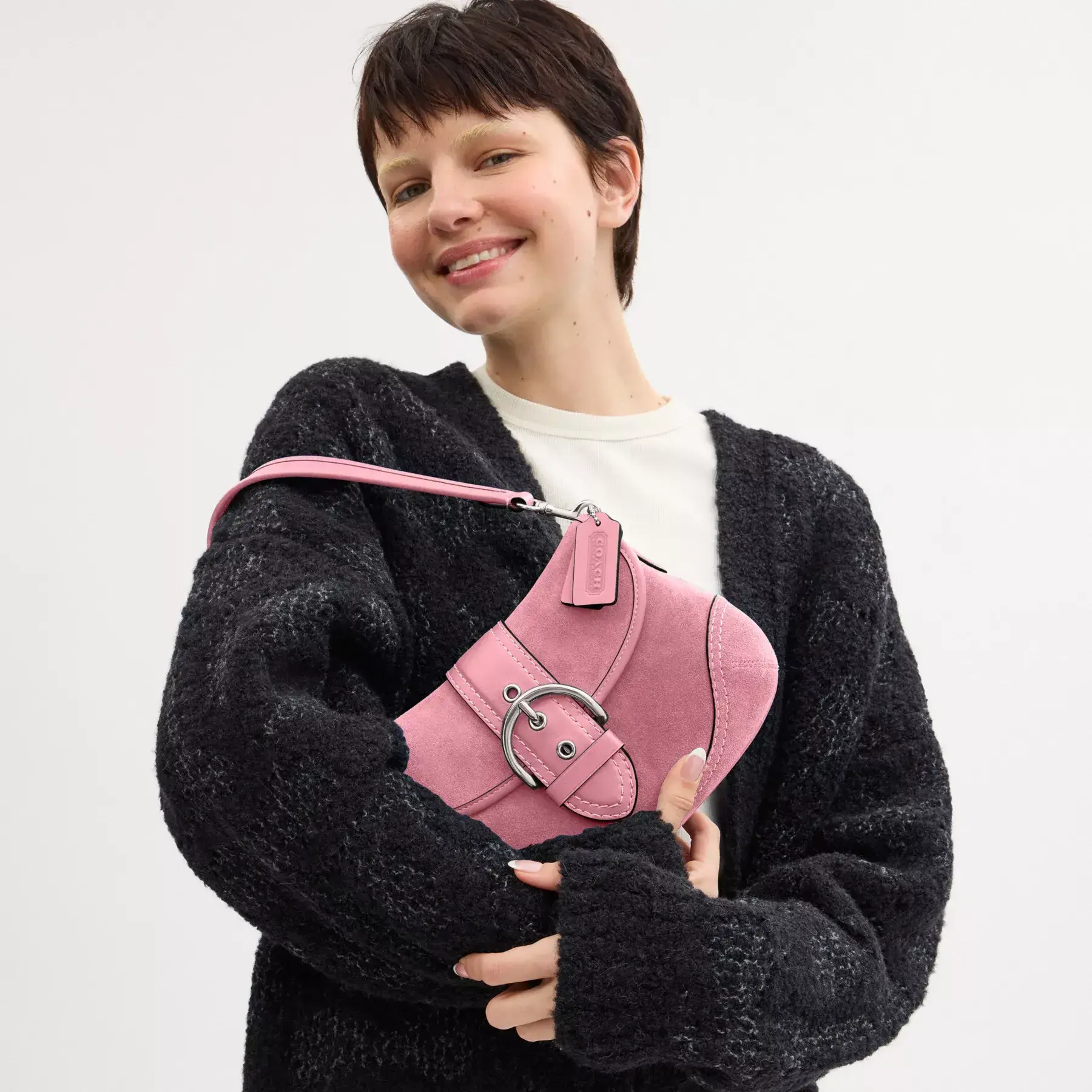 An instant icon when it was first introduced in 2006, our reimagined Soho Flap is back (and better than ever). The velvety suede and glovetanned leather flap-front silhouette has a detachable short shoulder strap, an inside zip pocket and a spacious interior with room for your phone, wallet, keys, and other essentials.
