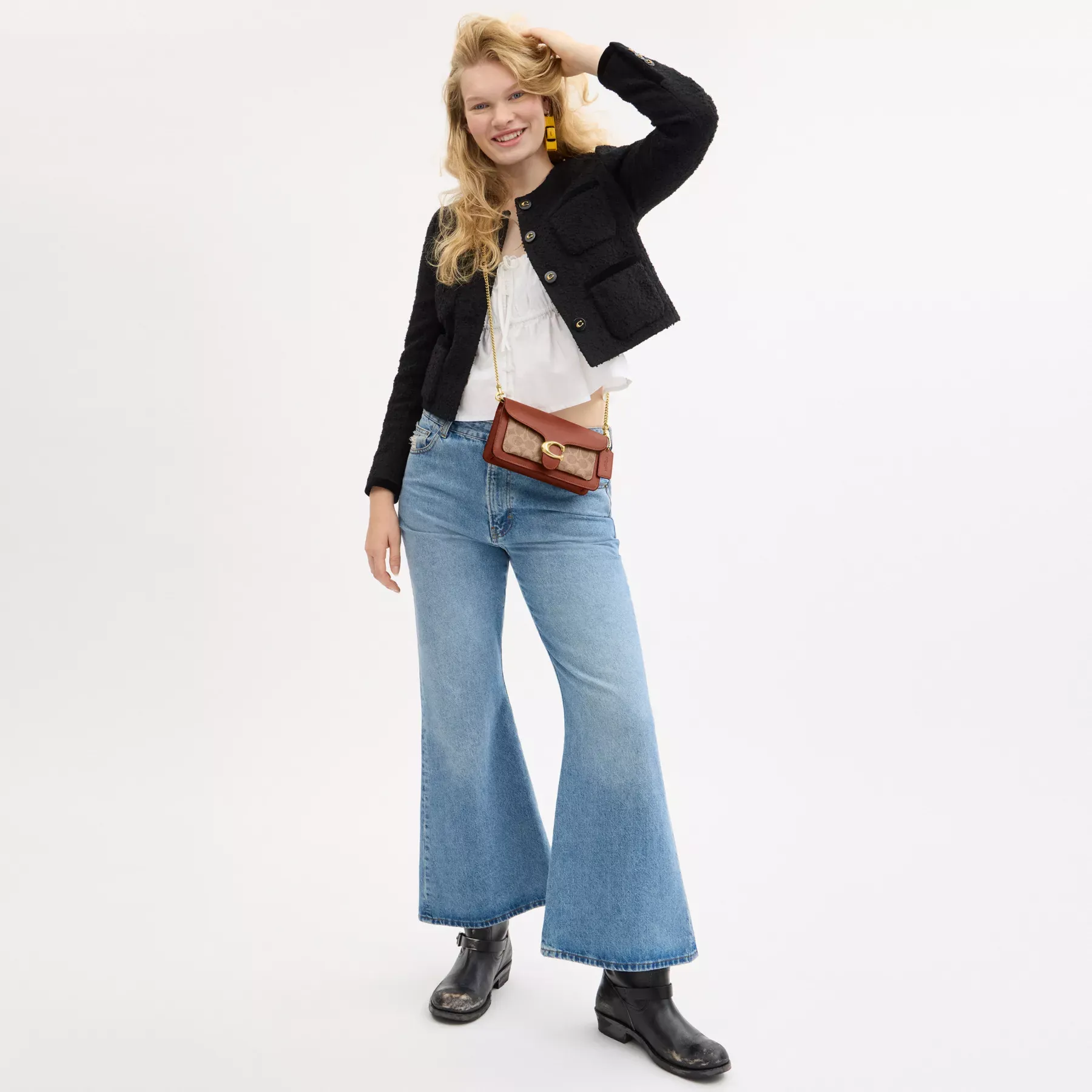- Detachable chain strap with 54.5cm drop for shoulder or crossbody wear