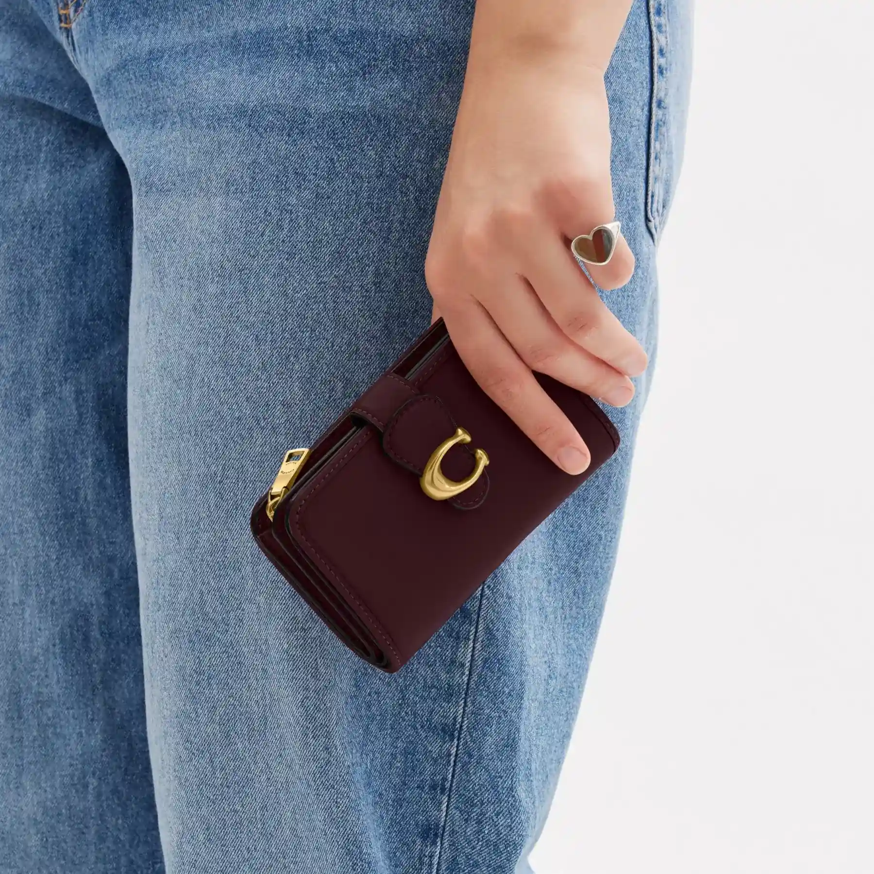 Crafted of smooth leather, this bi-fold Tabby medium wallet is a modern take on an archival 1970s Coach design. Featuring a convenient exterior zip pocket for coins, receipts, earbuds and other small essentials, it unsnaps to reveal ten card slots, slip pockets and a full-length bill compartment.