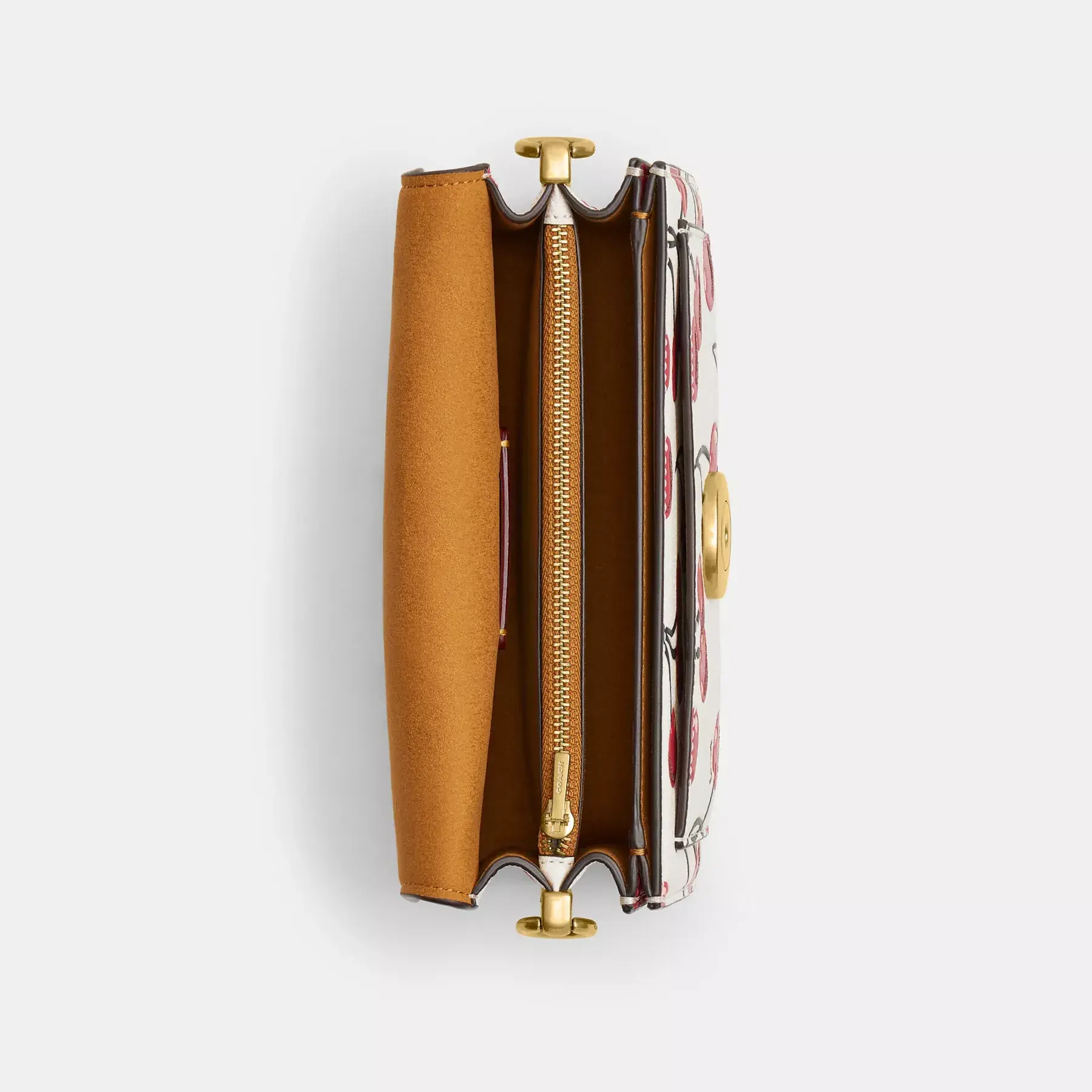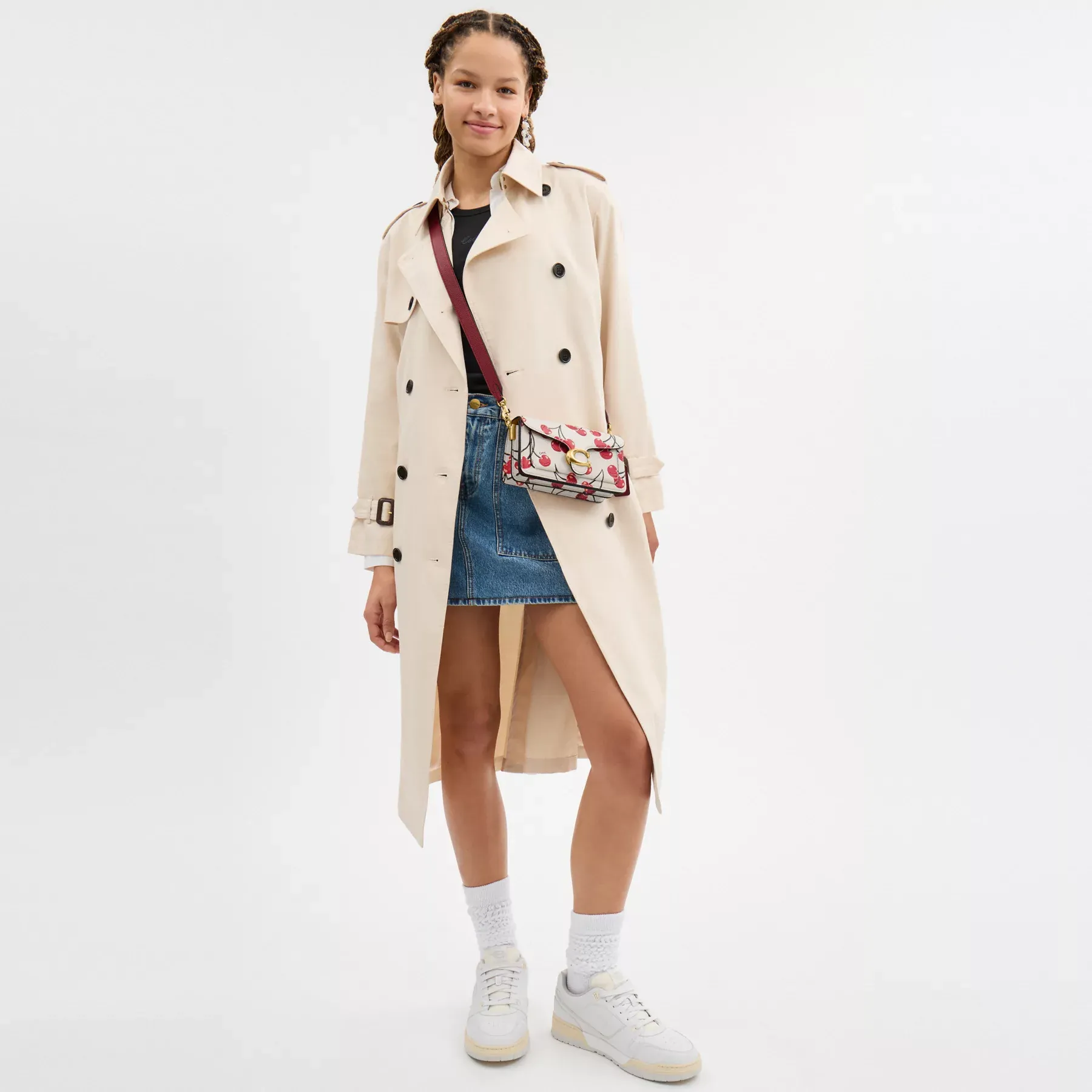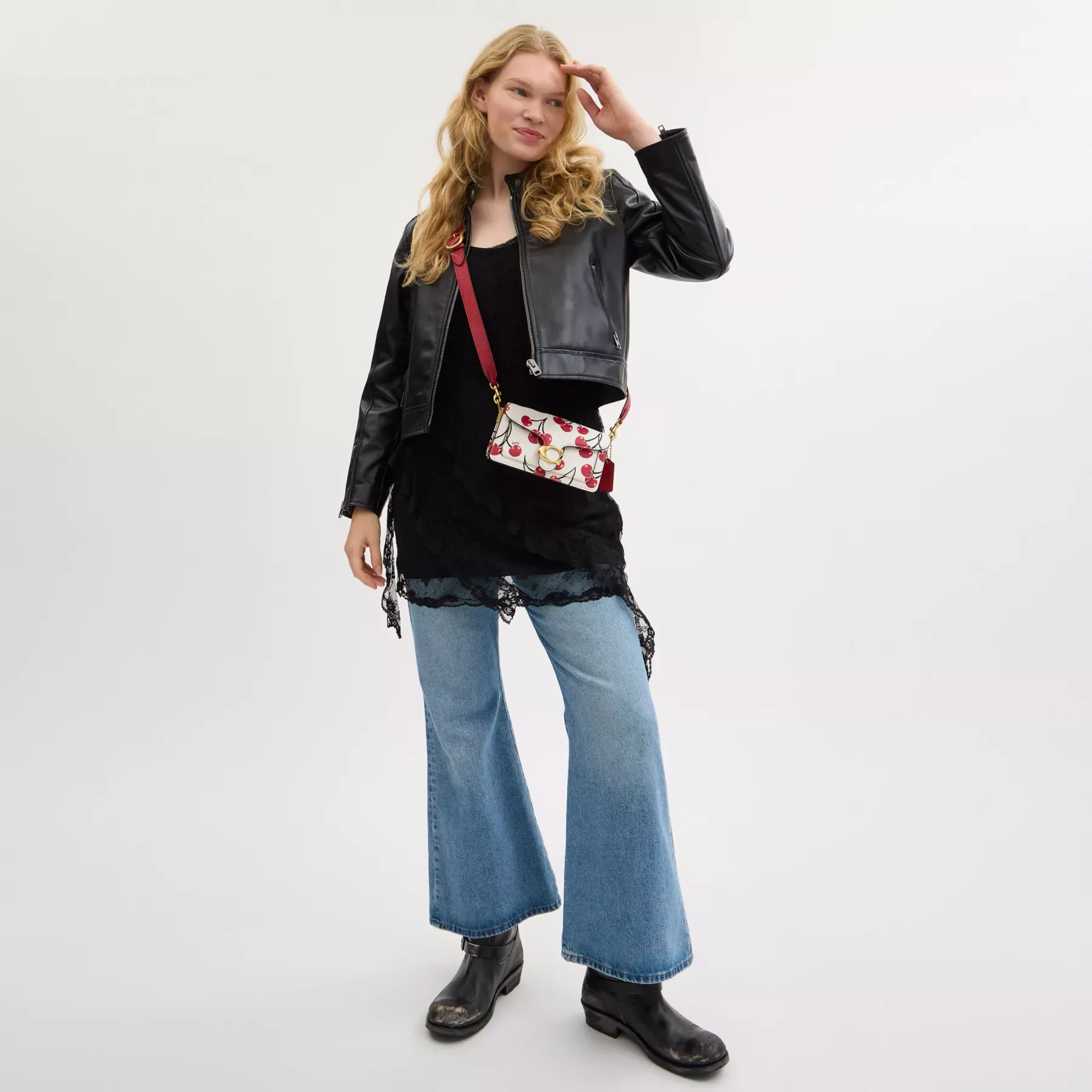A modern take on an archival 1970s Coach design, our structured Tabby shoulder bag is crafted of polished pebble leather featuring a cheerful cherry print detailed with glittery accents for a touch of sparkle. Smaller than the 26, the petite 20 has two detachable straps to carry by hand, style as a short shoulder bag or wear crossbody. It’s finished with our Signature hardware for an iconic touch.