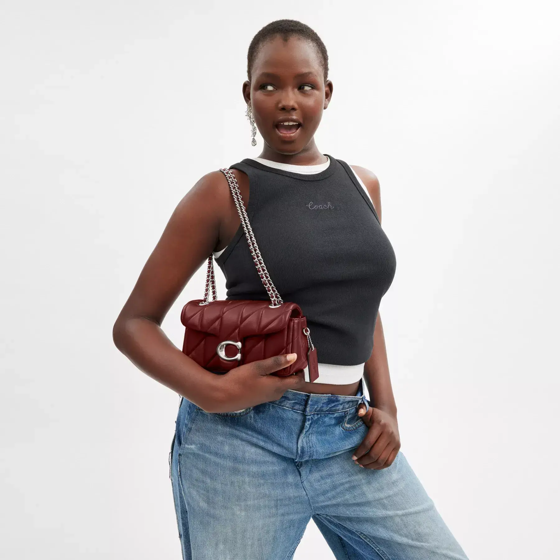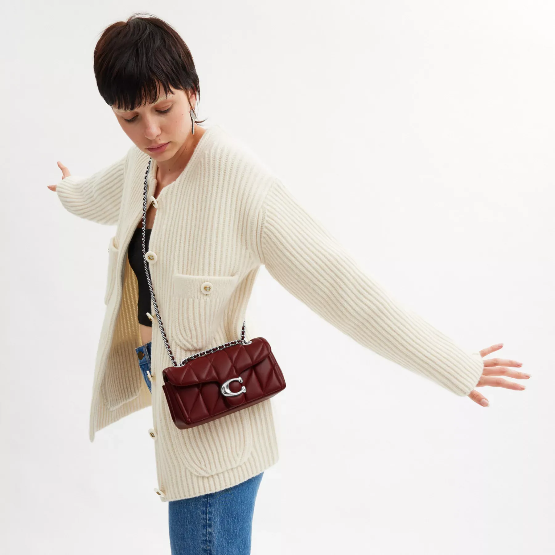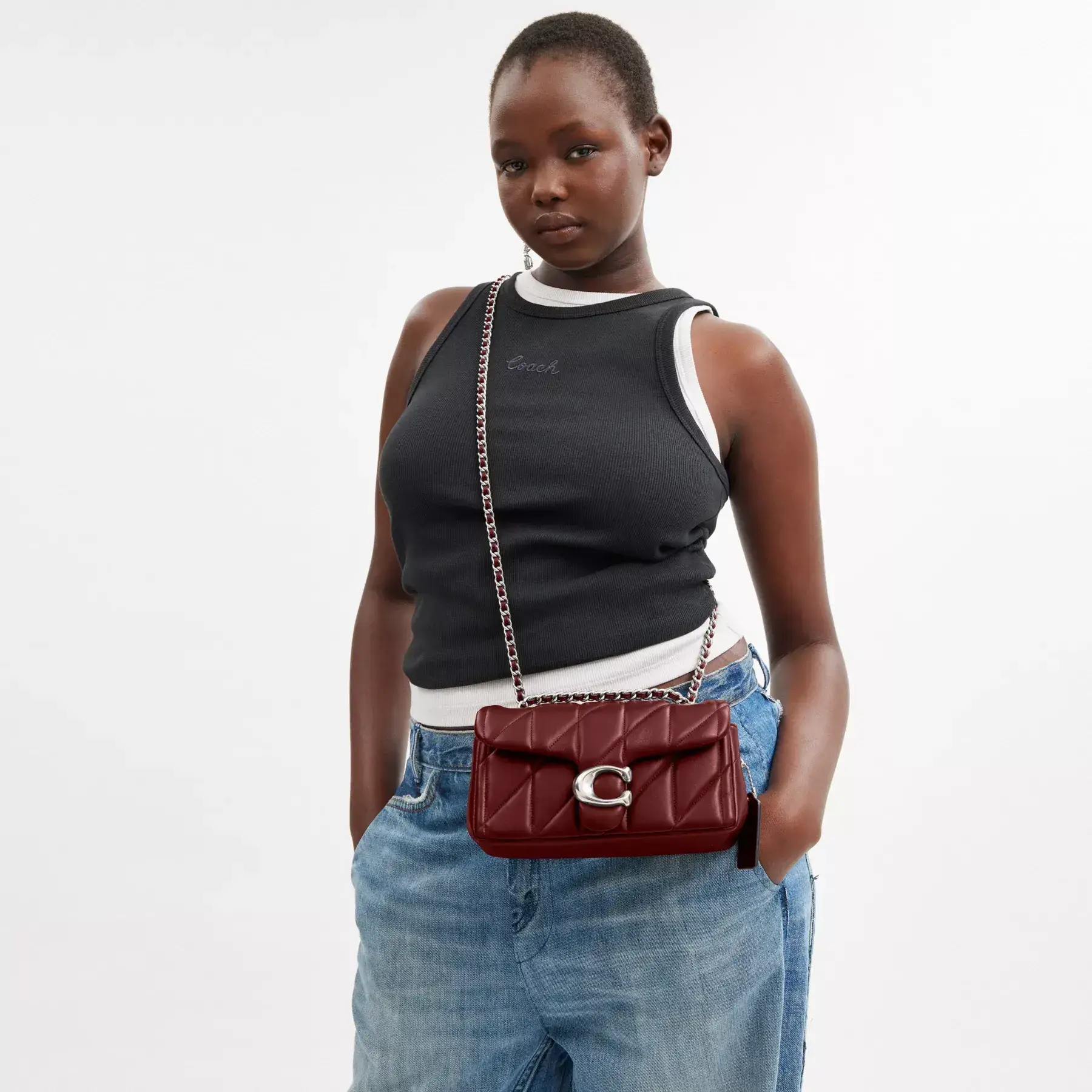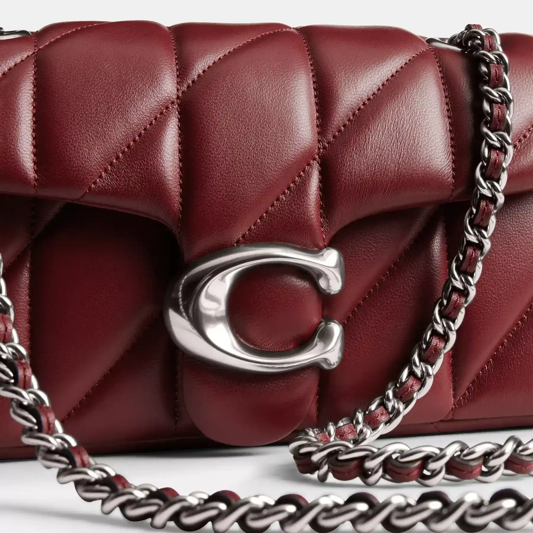 A modern take on an archival 1970s Coach design, our structured Tabby shoulder bag is crafted of quilted plush, ultra-soft nappa leather. Slightly smaller than the 26, the petite 20 features a long leather chain strap to wear crossbody or double up for a shorter, dressier look. It’s finished with our Signature hardware for an iconic touch.