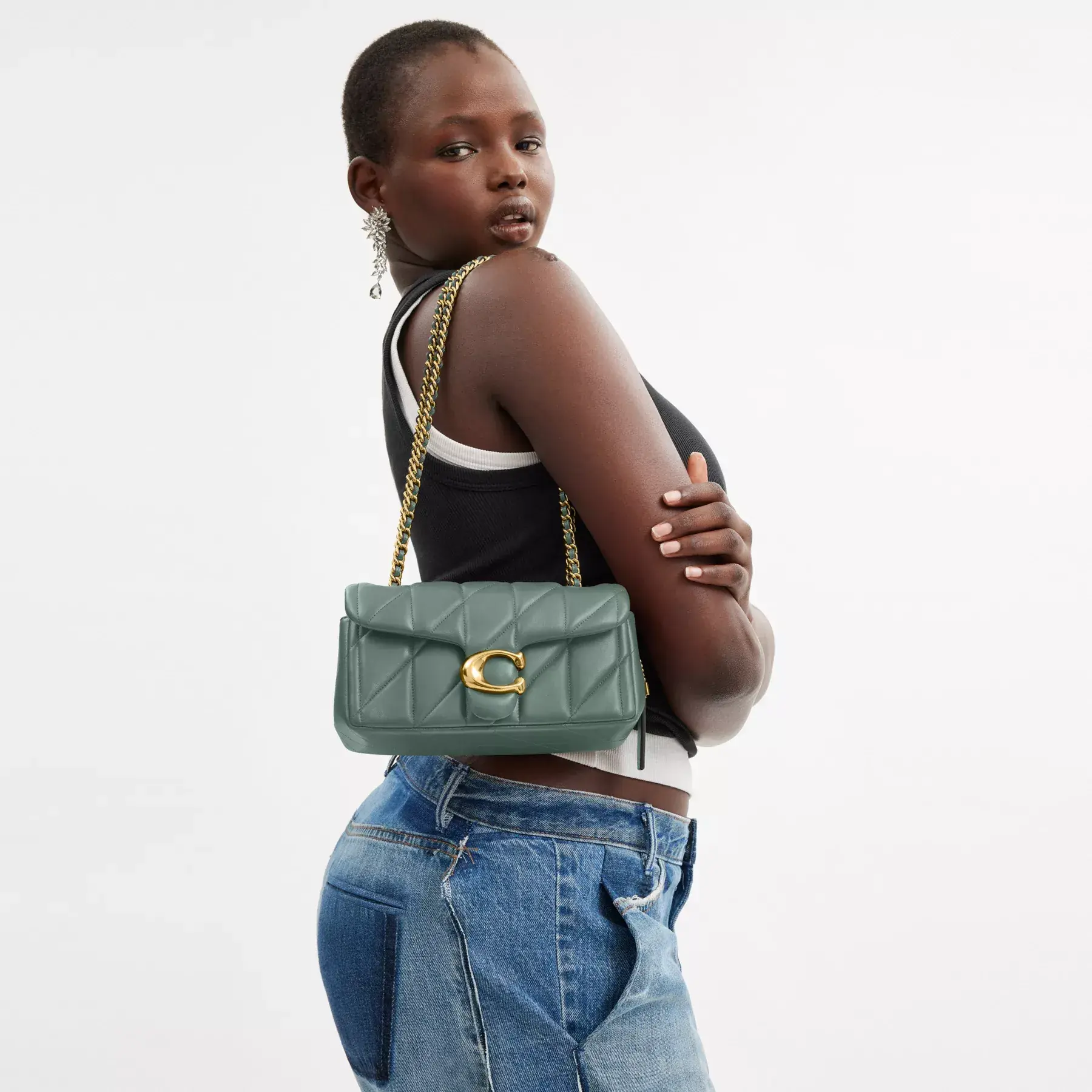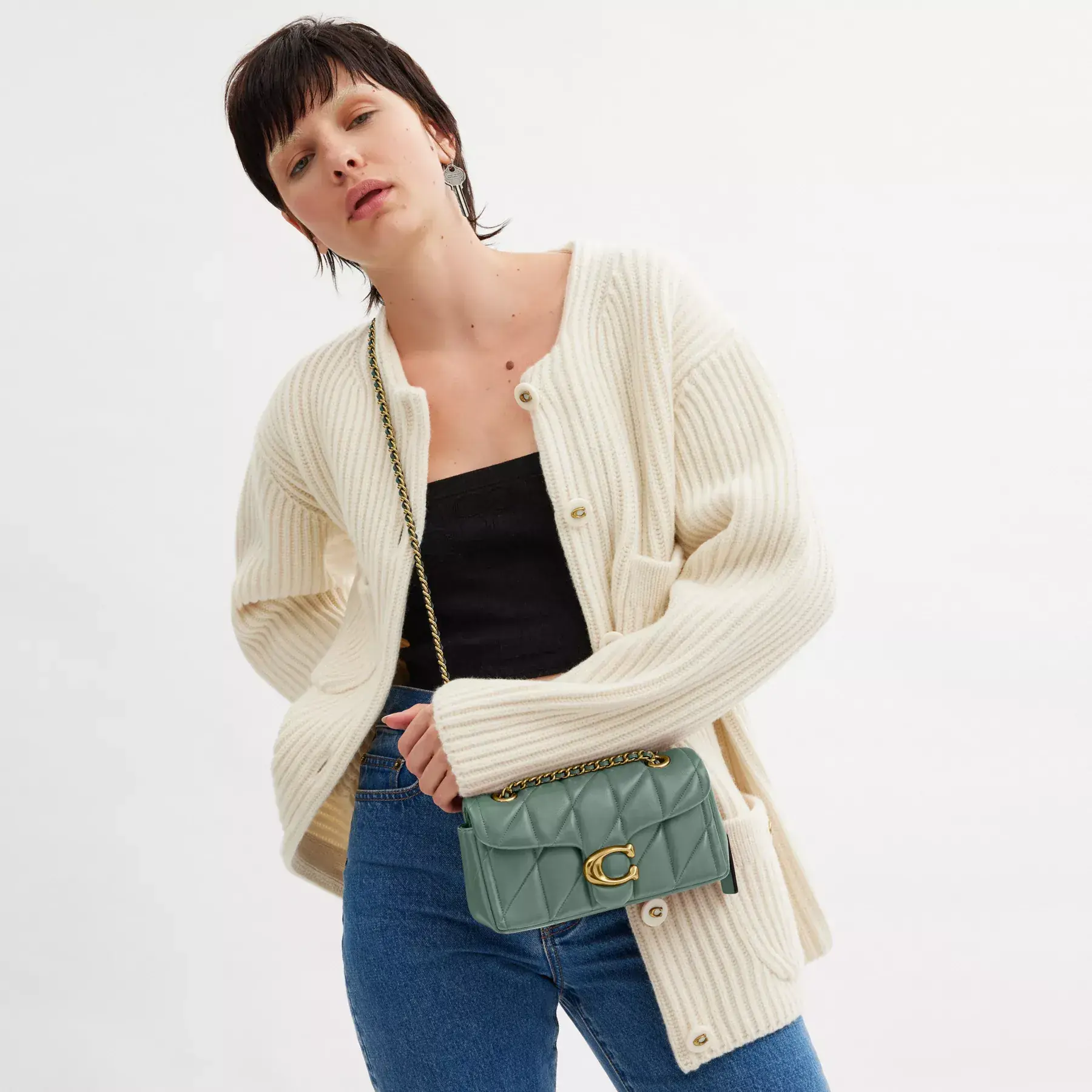 A modern take on an archival 1970s Coach design, our structured Tabby shoulder bag is crafted of quilted plush, ultra-soft nappa leather. Slightly smaller than the 26, the petite 20 features a long leather chain strap to wear crossbody or double up for a shorter, dressier look. It’s finished with our Signature hardware for an iconic touch.