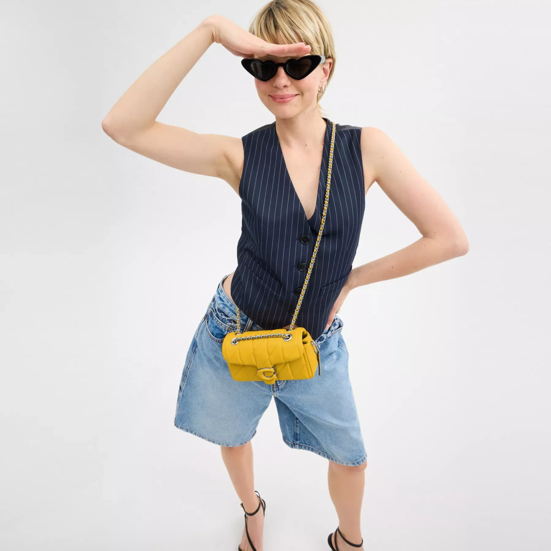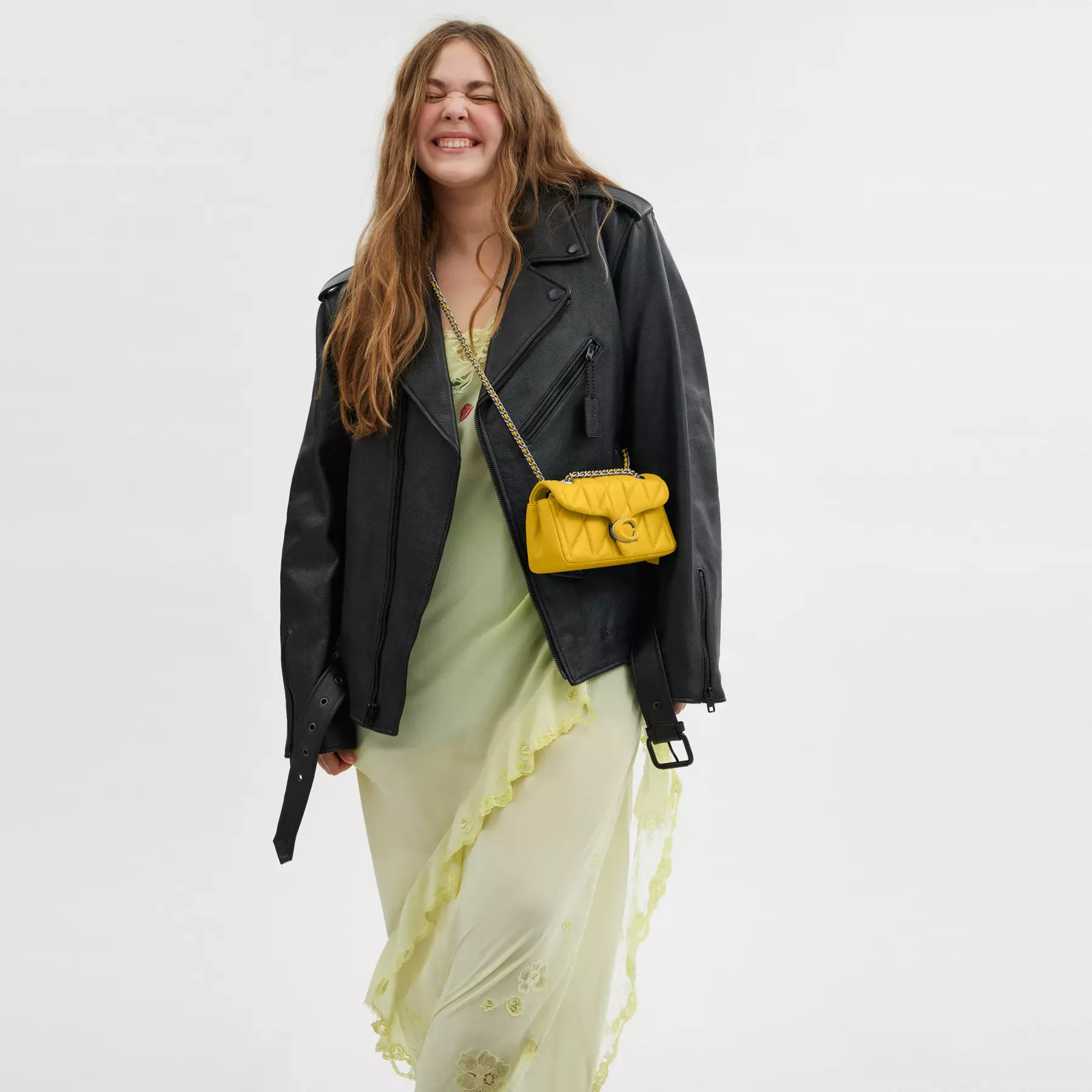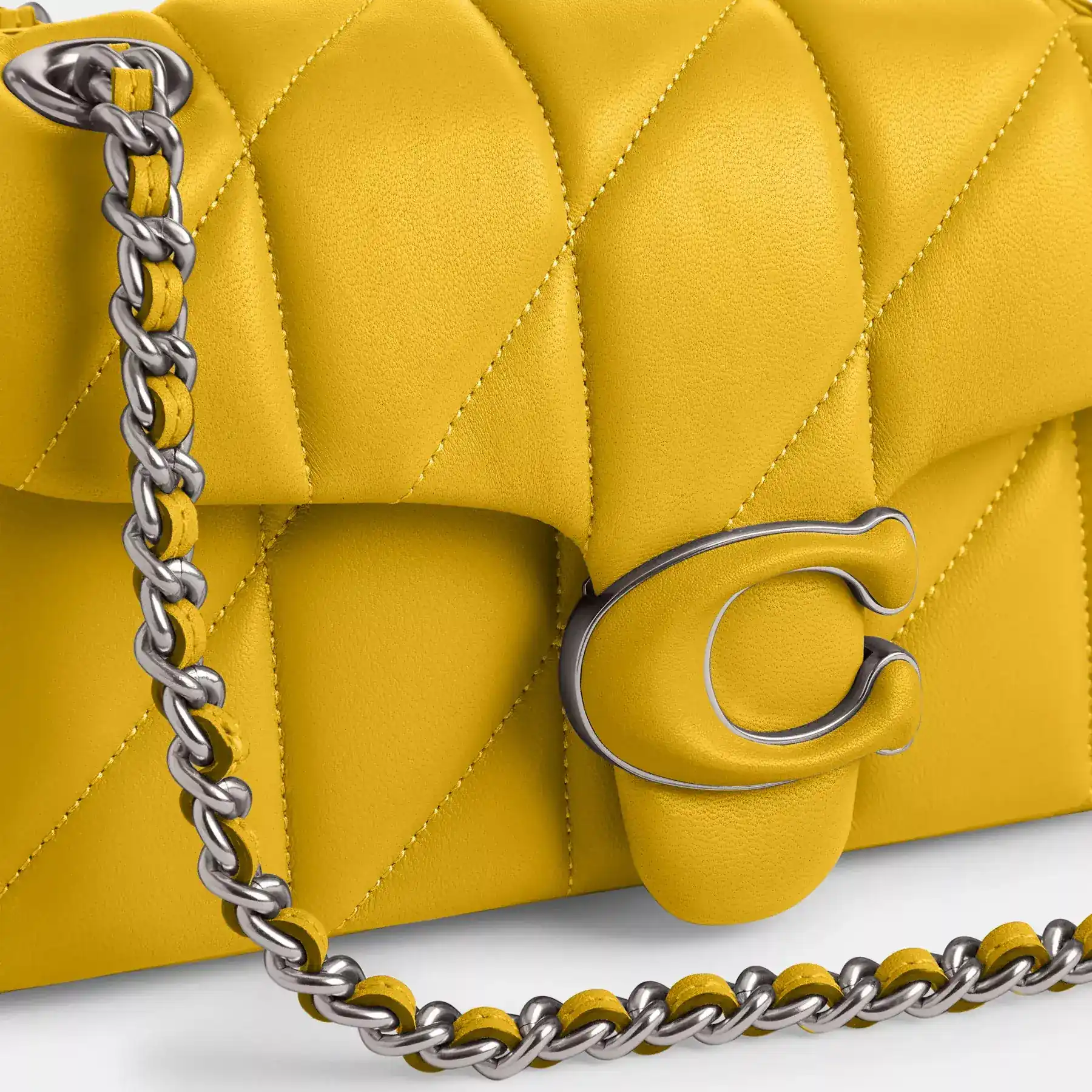 A modern take on an archival 1970s Coach design, our structured Tabby shoulder bag is crafted of quilted plush, ultra-soft nappa leather. Slightly smaller than the 26, the petite 20 features a long leather chain strap to wear crossbody or double up for a shorter, dressier look. It’s finished with our tonal Signature hardware for an iconic touch.