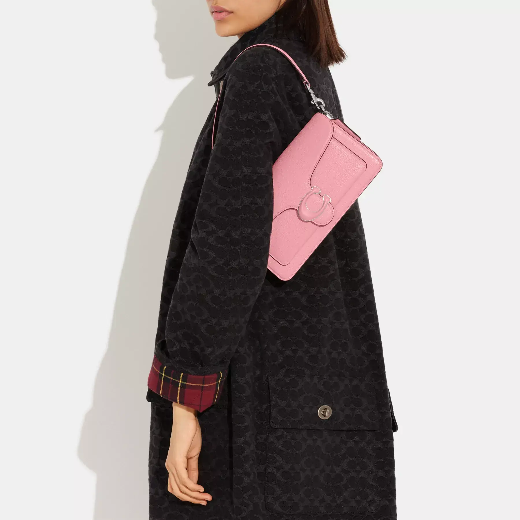 A modern take on an archival 1970s Coach design, our structured Tabby shoulder bag is crafted of polished pebble leather. Finished with our tonal leather covered Signature hardware for an iconic touch, the compact 26 features two detachable straps to carry by hand, style as a short shoulder bag or wear crossbody.