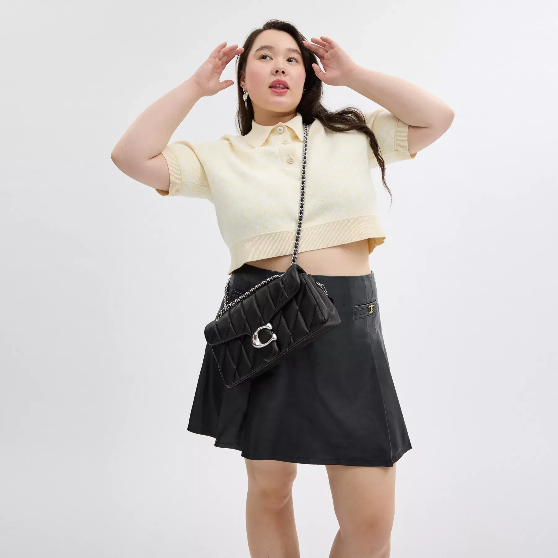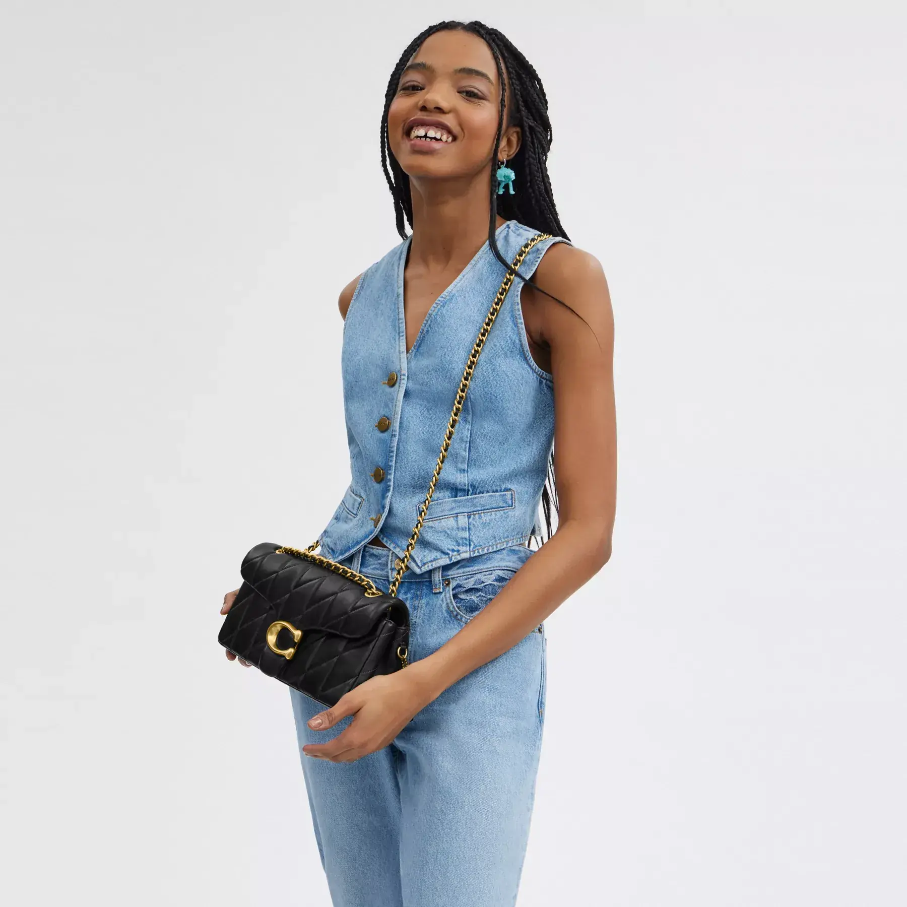 A modern take on an archival 1970s Coach design, our structured Tabby shoulder bag is crafted of quilted plush, ultra-soft nappa leather. Finished with our Signature hardware for an iconic touch, the compact 26 features a long leather chain strap to wear crossbody or double up for a shorter, dressier look.