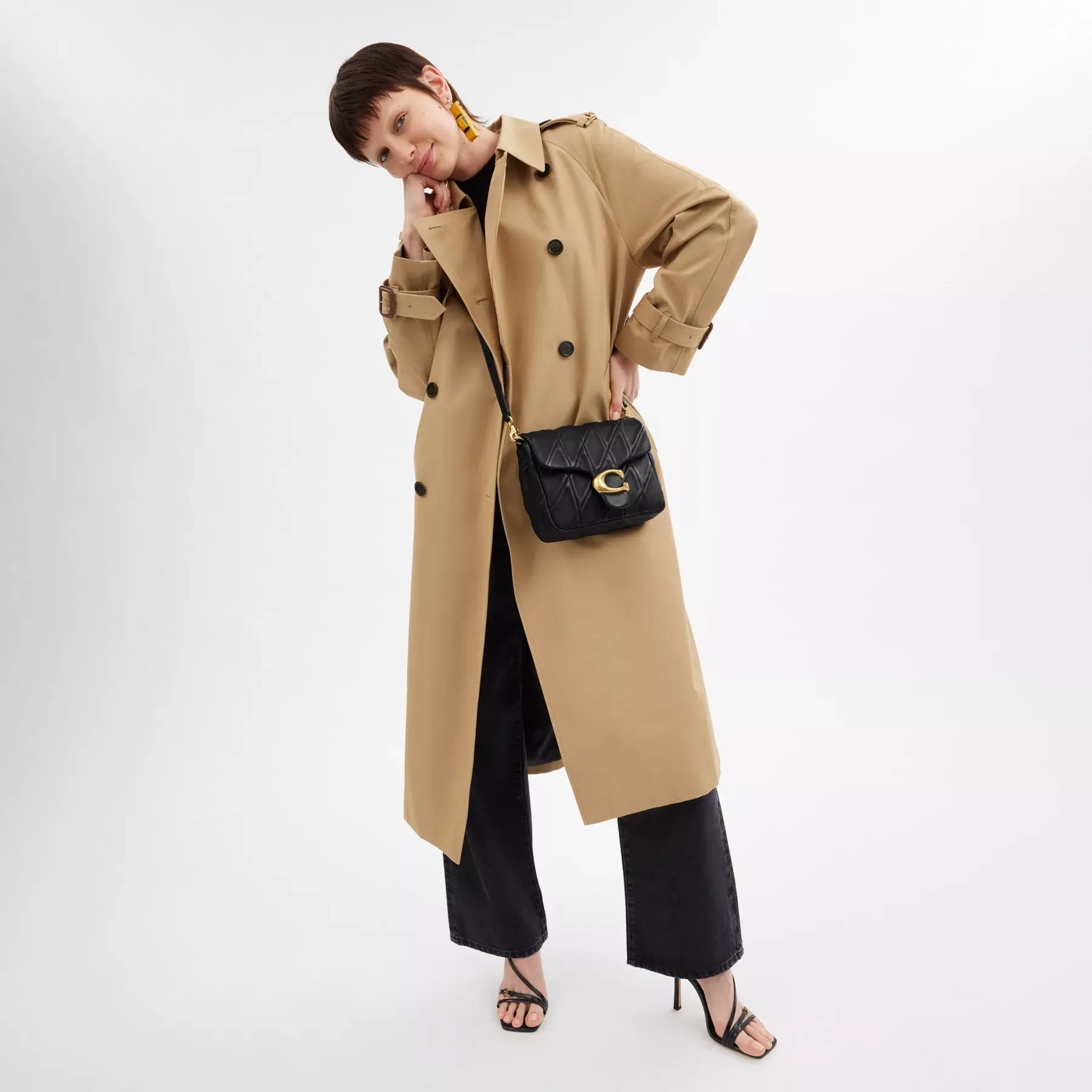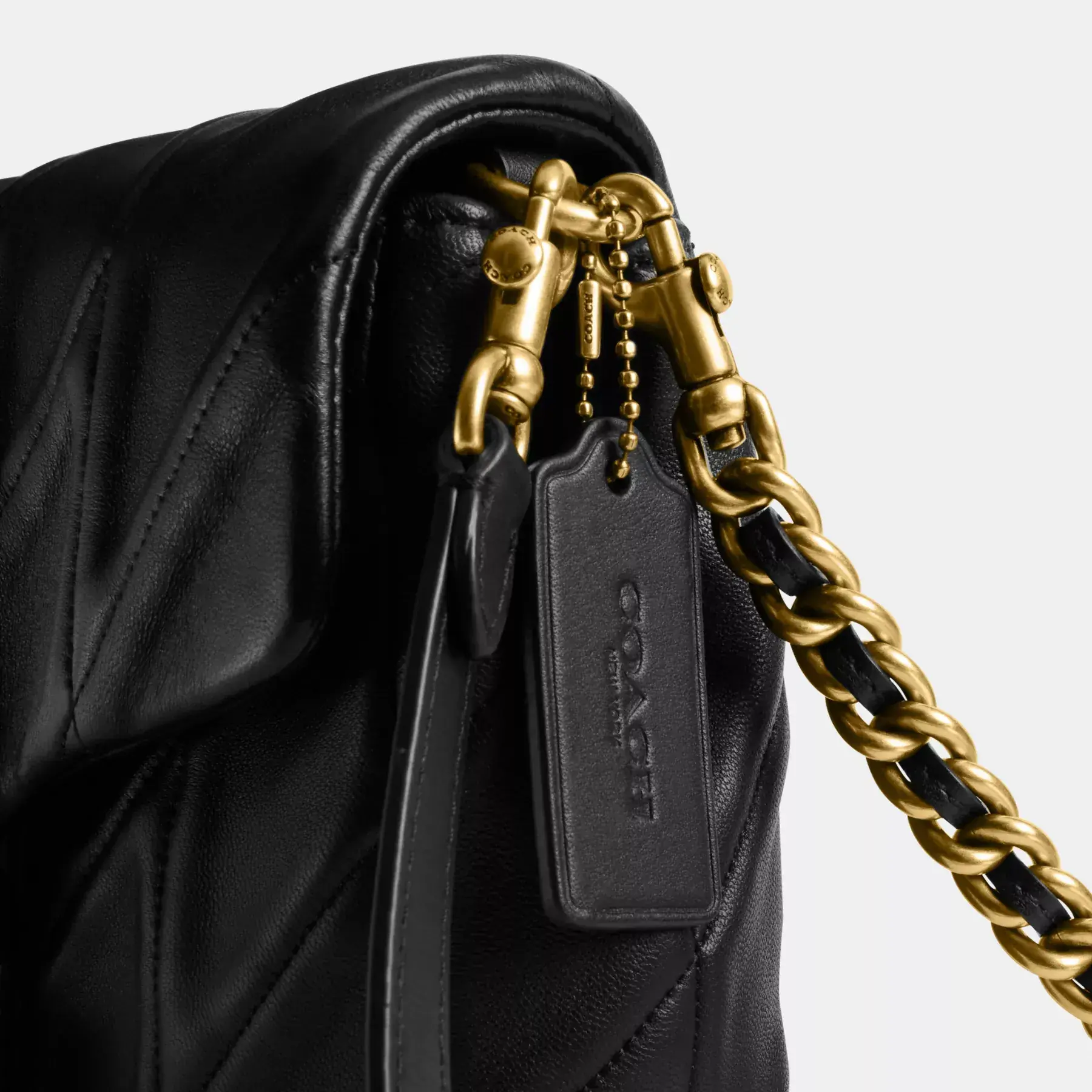 Inspired by the dynamic energy of our hometown New York City, the Times Square Tabby is a modern take on an archival 1970s Coach design. Crafted of quilted washed nappa leather and finished with our Signature hardware for an iconic touch, the structured silhouette features versatile styling options with an adjustable leather and chain strap to wear short or long on the shoulder and an adjustable leather crossbody strap.
