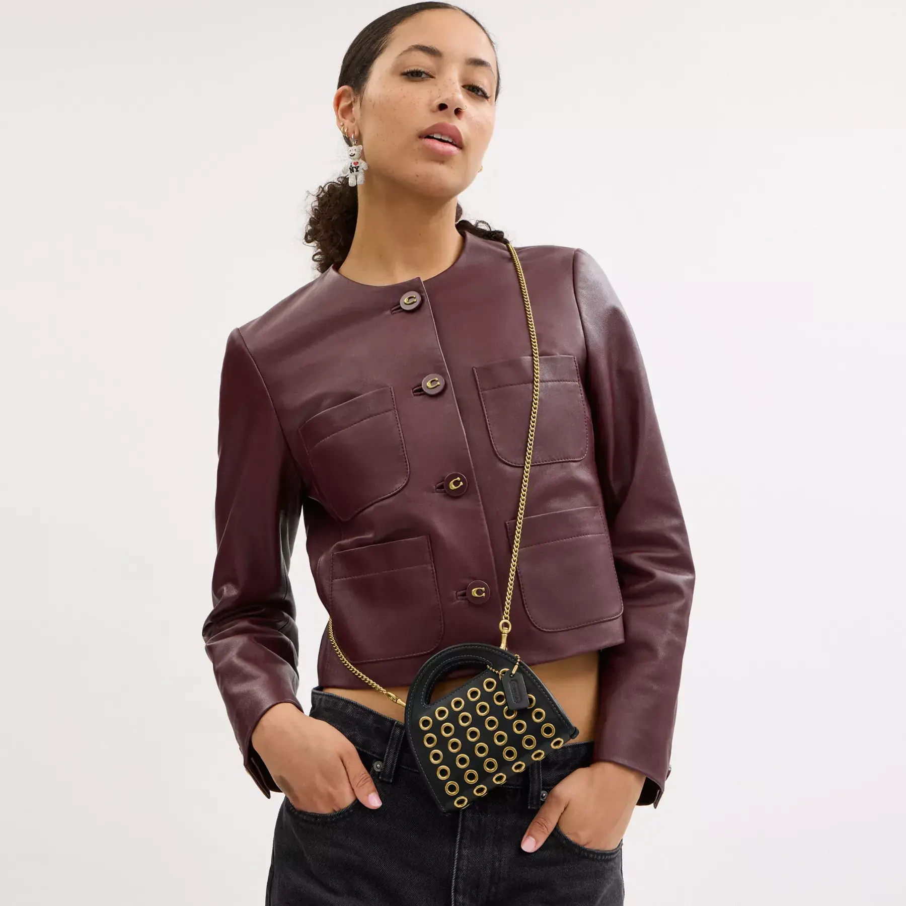 The Top Handle Card Case is part of The Coach Originals, a collection of archival-inspired bags that celebrates our legacy and authentic New York heritage. Reimagined for today, this case is based on an arc-shaped Coach bag. Perfect for holding wireless earbuds, cards, cash, lip balm and pocket change, the compact glovetanned leather design is detailed with edgy polished grommet hardware and features interior card slots, a zip pocket and a full-length bill compartment. Toss it in your bag, carry by the top handles or attach the chain strap to wear it on the shoulder and crossbody. Some styles are just too good to leave in the archives.