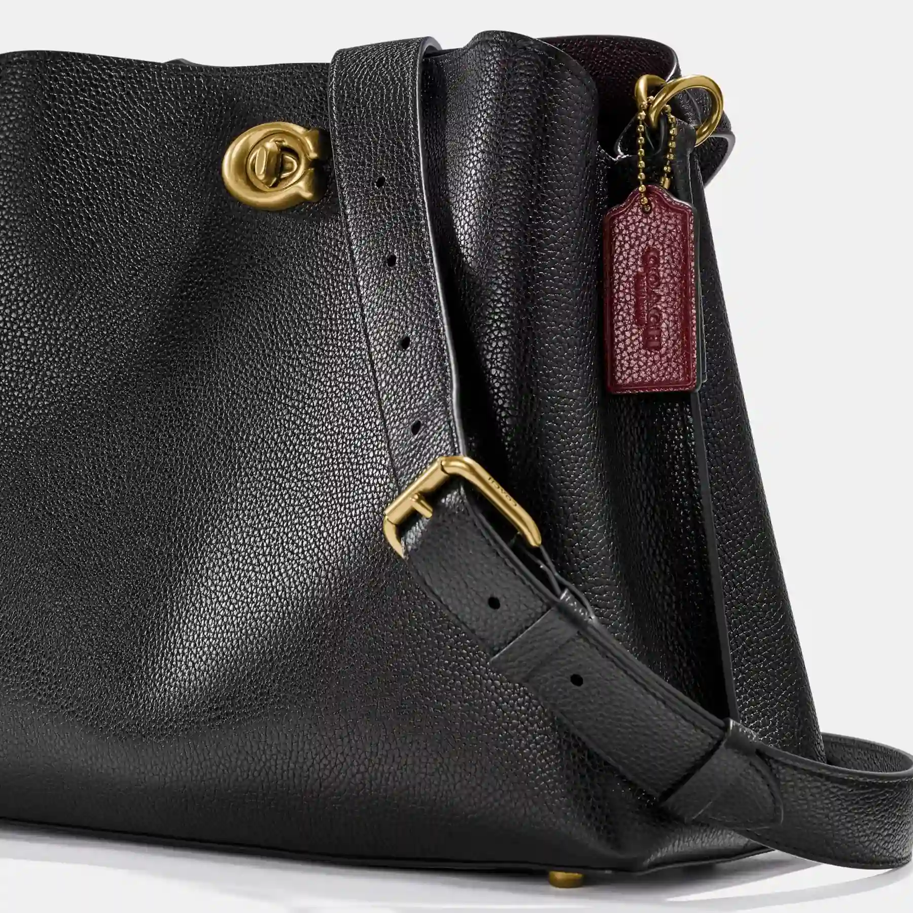 Not too big, not too small, Willow is the perfect go-anywhere shoulder bag with space for all of your day-to-day essentials. Crafted of polished pebble leather, it has an organized interior with one zip compartment, two open compartments and a snap pocket for small necessities. The roomy trapezoid shape secures with our Signature turnlock closure and can be carried by hand, on the shoulder or crossbody.