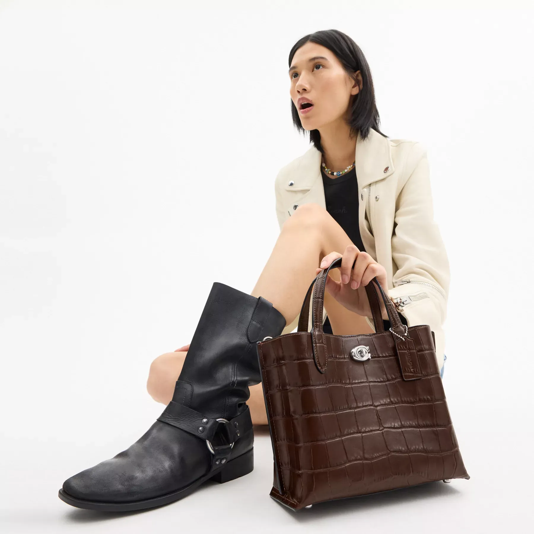 Not too big, not too small, Willow is the perfect carry-it-all tote with space for all of your day-to-day essentials. Crafted of distinctive crocodile-embossed leather and smooth leather, the 24 features two open pockets, a secure center zip compartment and our Signature turnlock closure. Carry it by the top handles or wear on the shoulder and crossbody with the detachable strap.